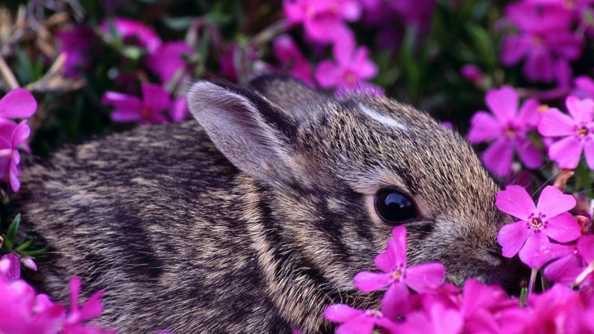 A little rabbit is hiding in the flowers