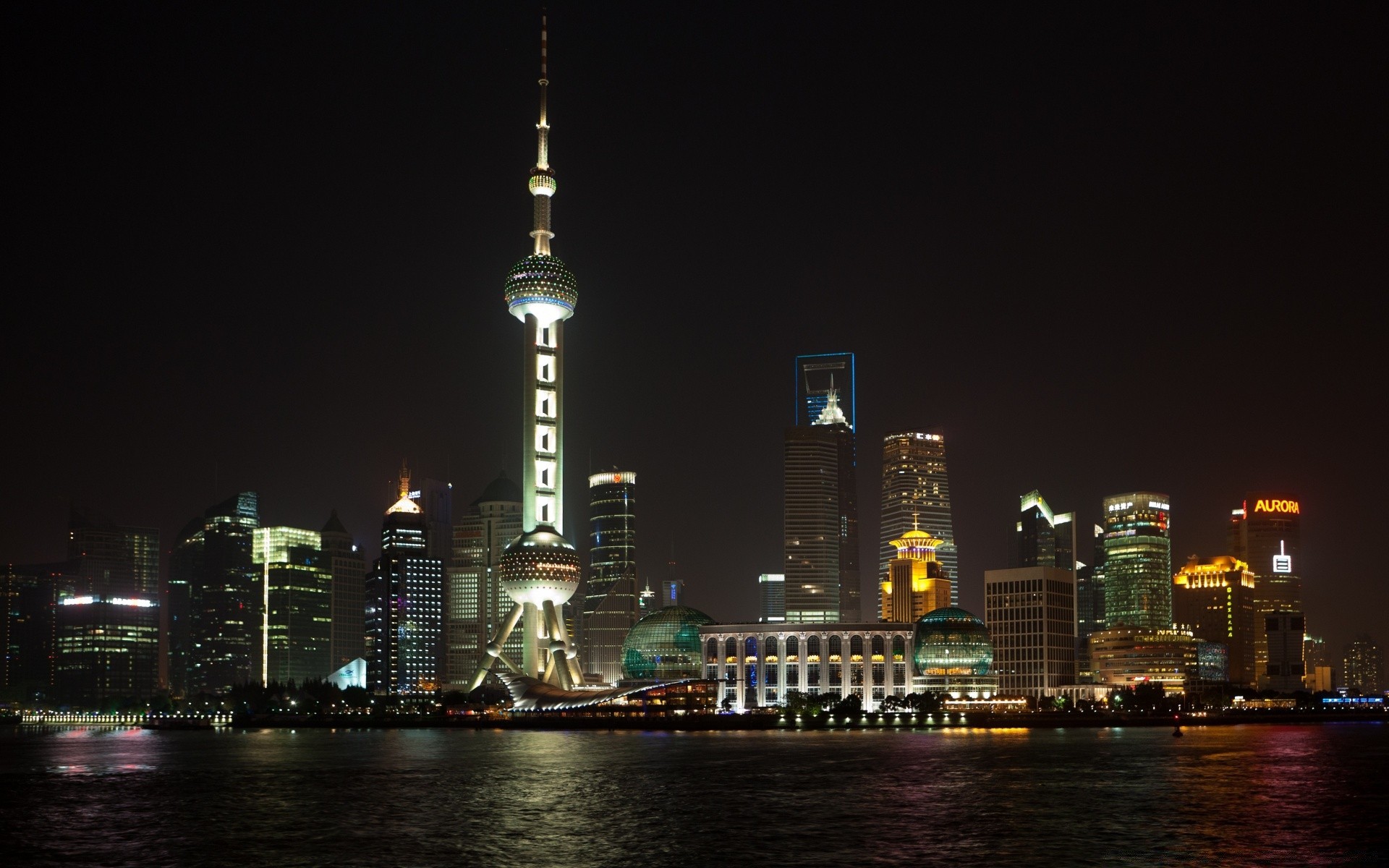 Night city skyscrapers in lights