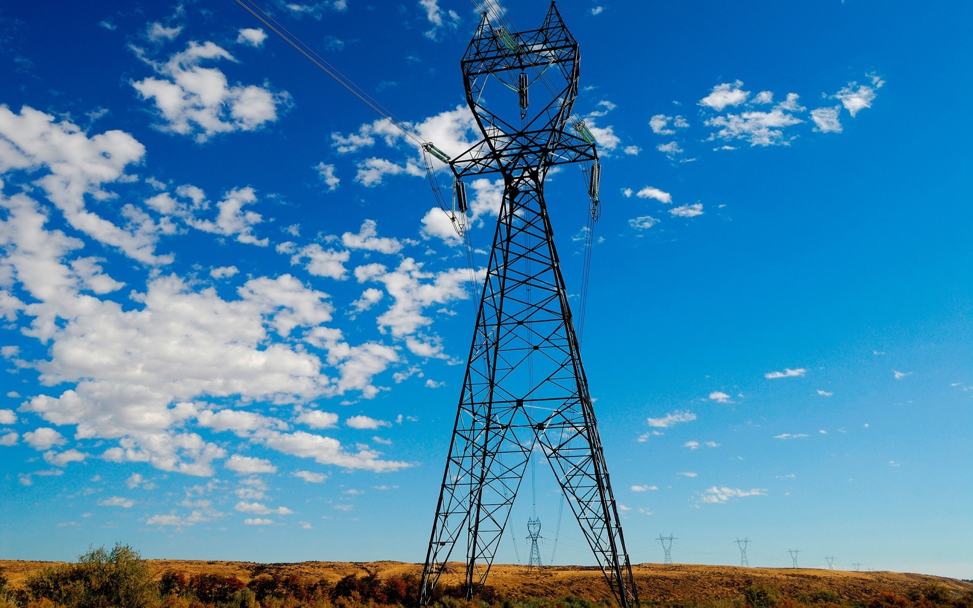 Power lines on the background of a summer landscape