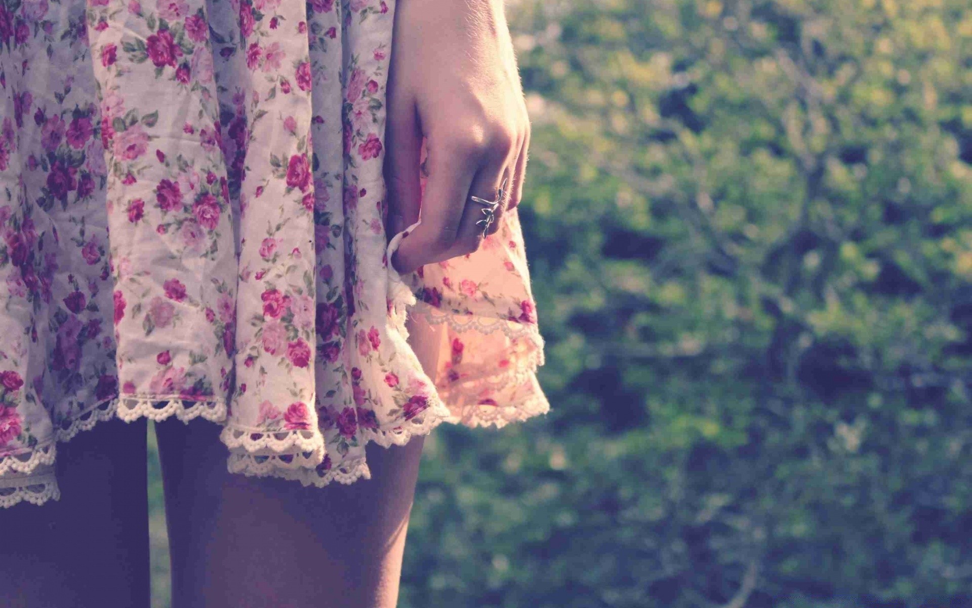 Actress in a pink dress in nature