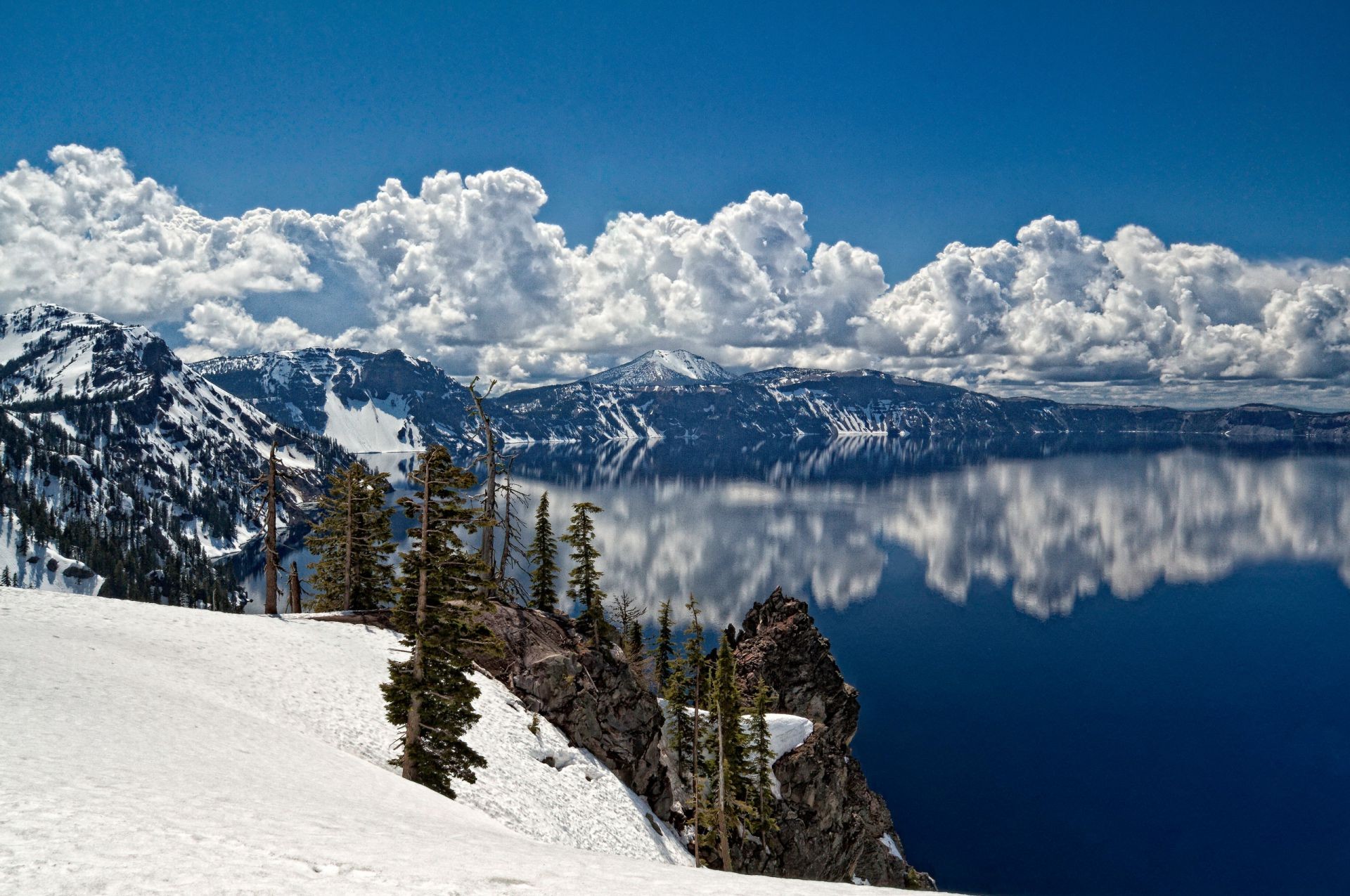 Beautiful mountains and sky with clouds are reflected in the lakeBeautiful mountains and sky with clouds are reflected in the lake