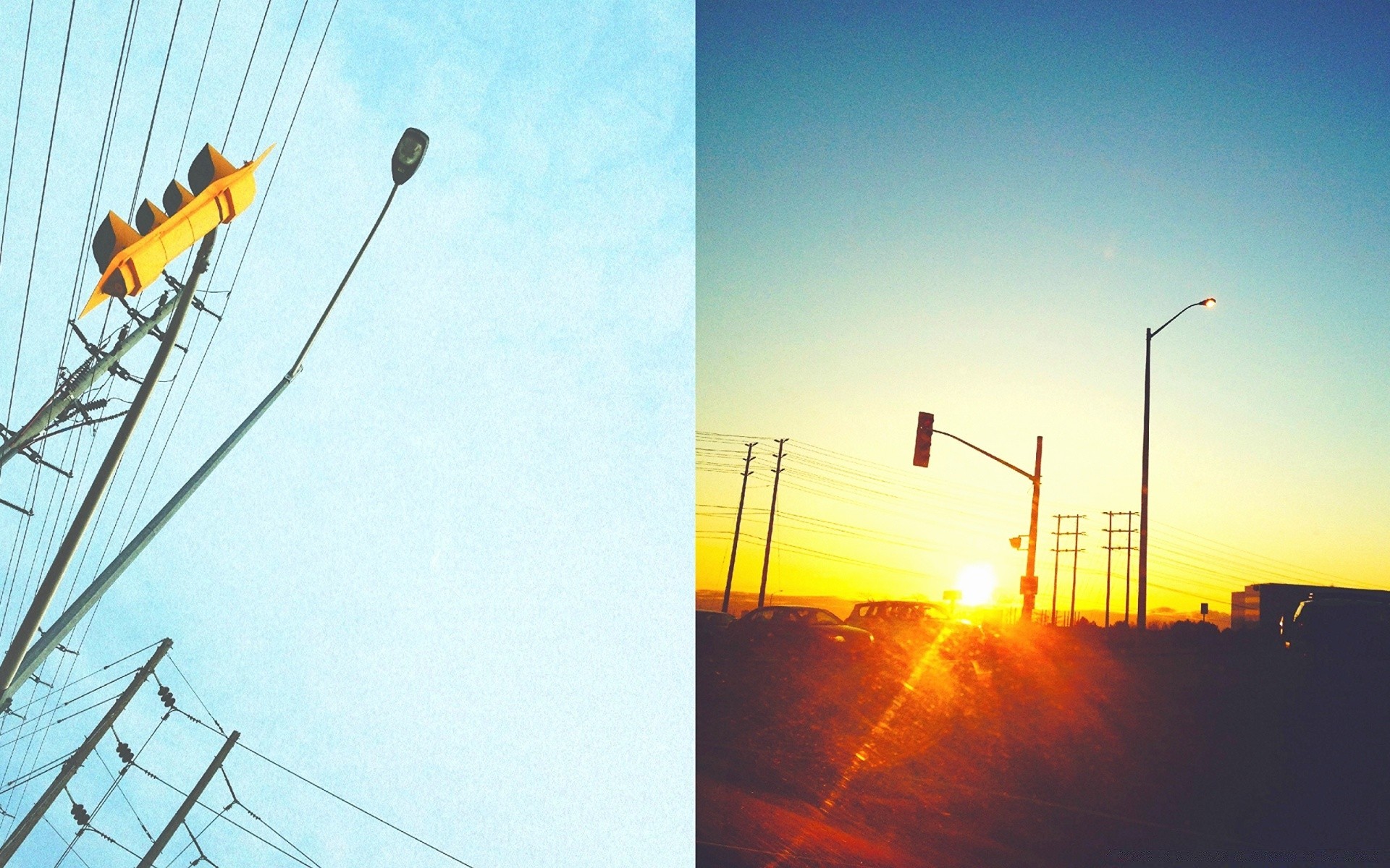 Sky with sunset on the background of eletricity