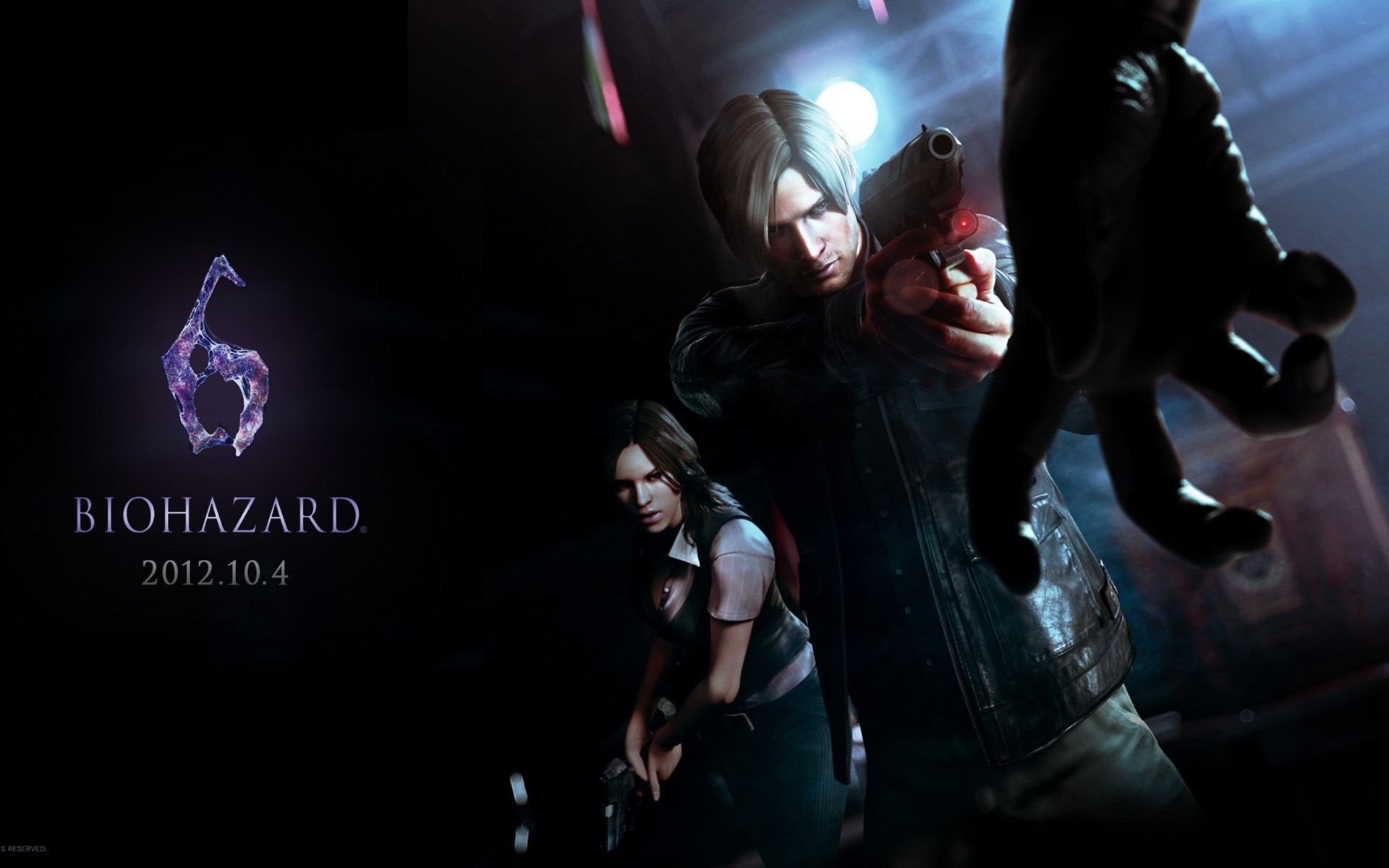 Two adults in black with pistols