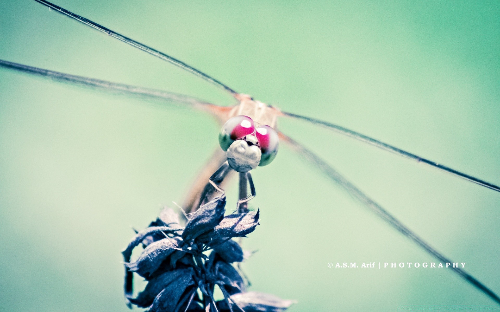 Macro-shooting of an insect with huge eyes and a fluffy body