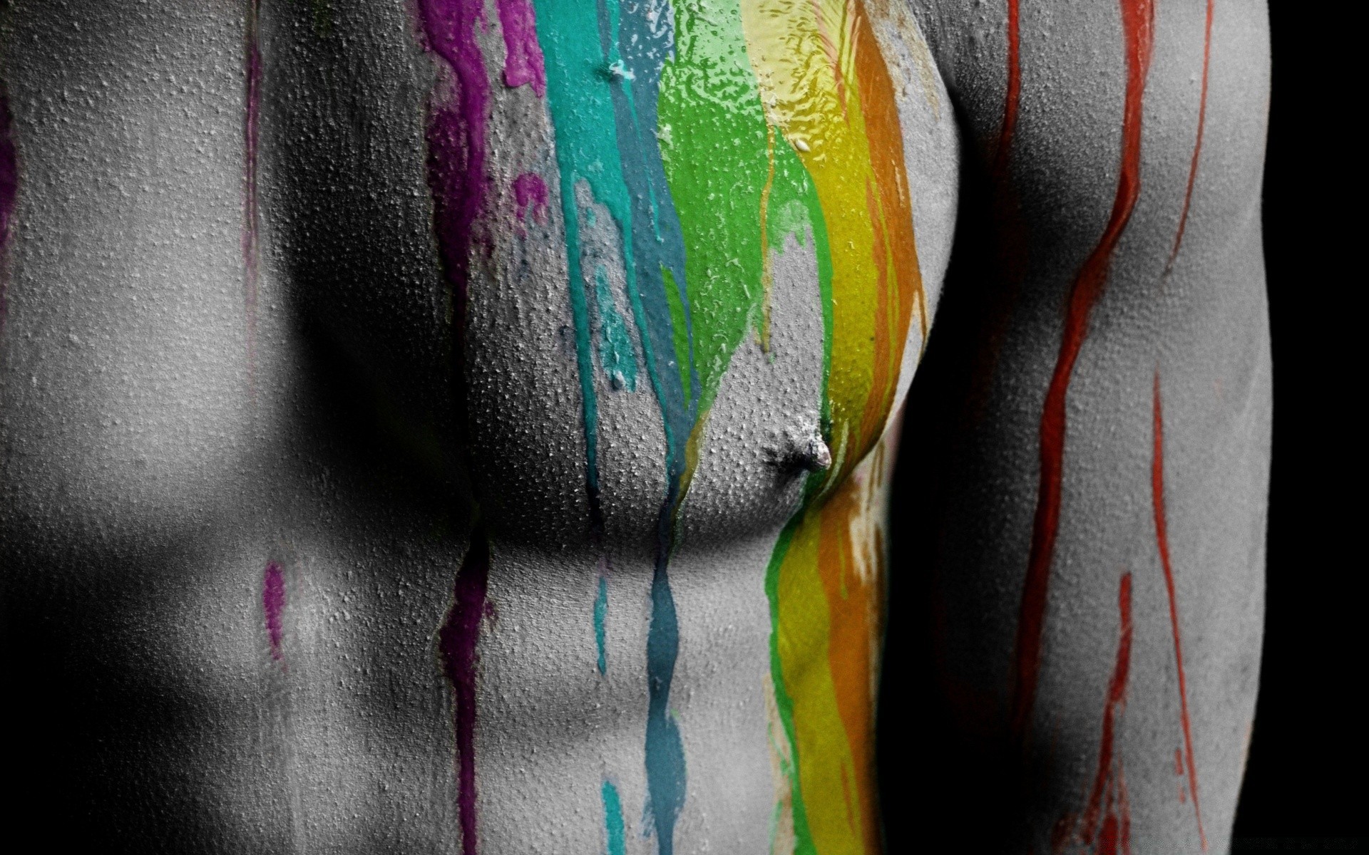 The body of a man upholstered in bright colors