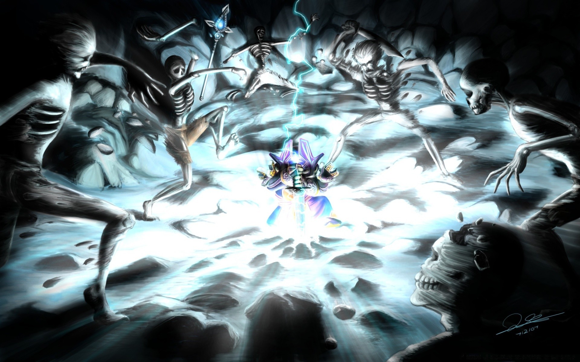 Fantasy art, silhouette in the cemetery, risen from the grave