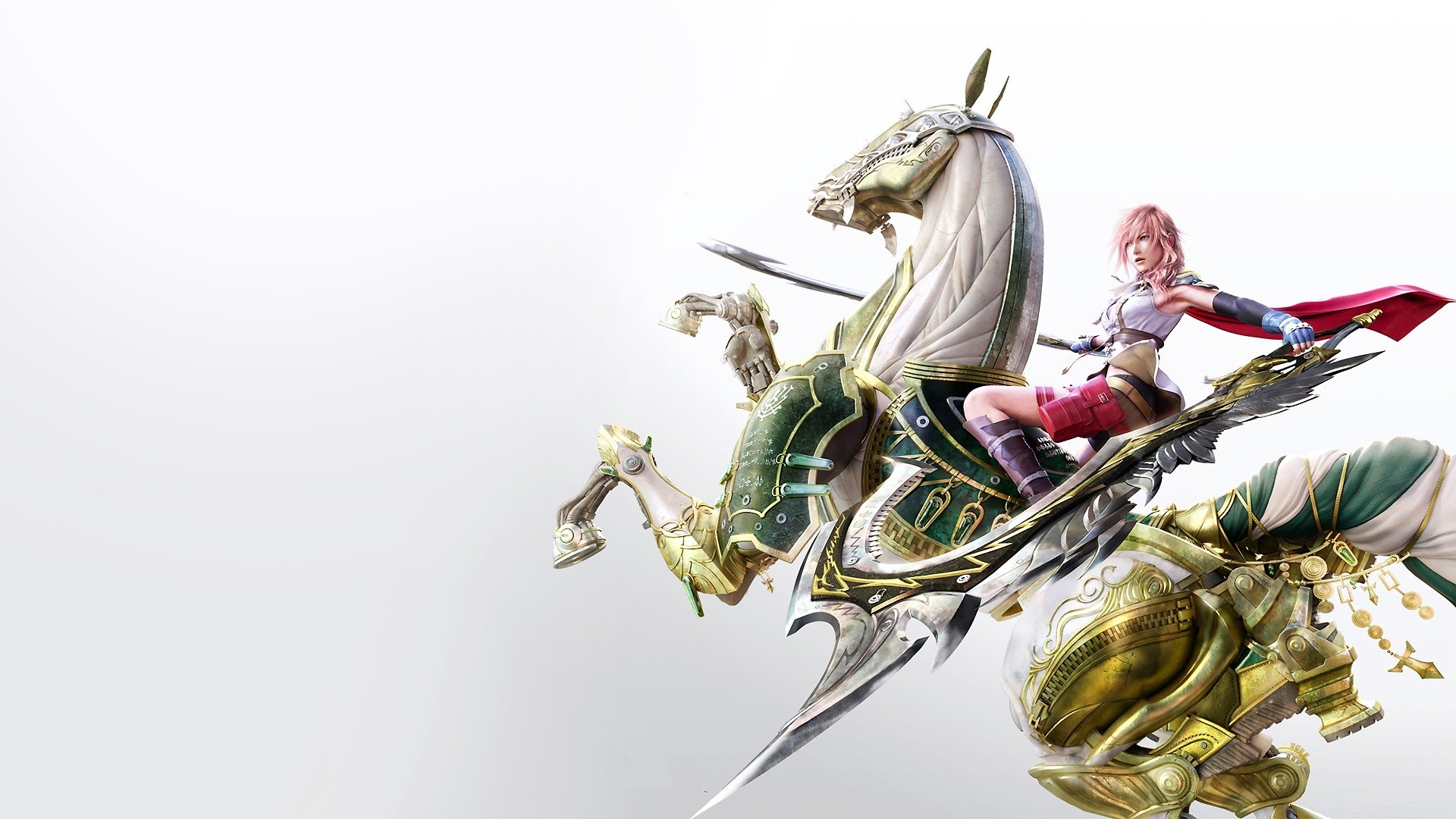 Final fantasy, a heroine in a red cloak riding a white horse in armor with a sword in her hand