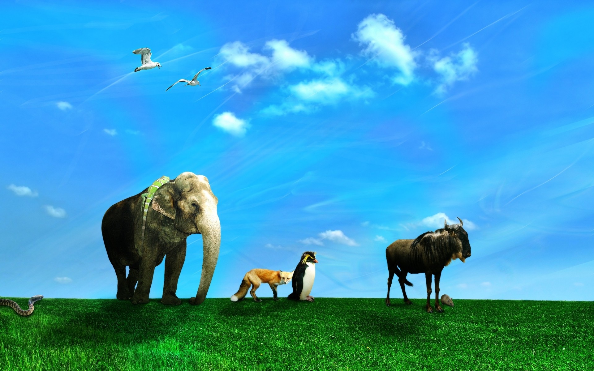The impossible is possible a herd of elephant penguin bison and fox, sur