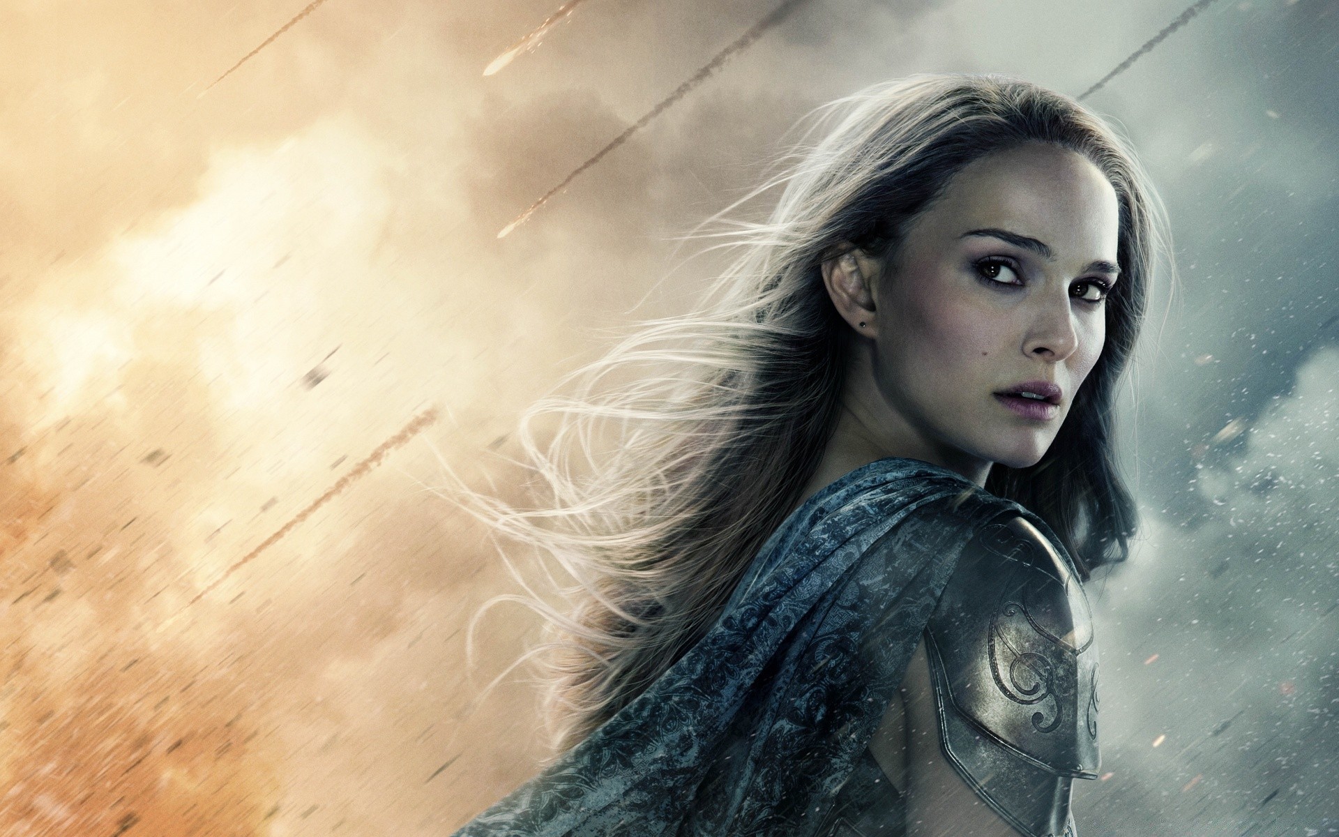 A beautiful woman with a steel shoulder pad and a flowing cape over her shoulder