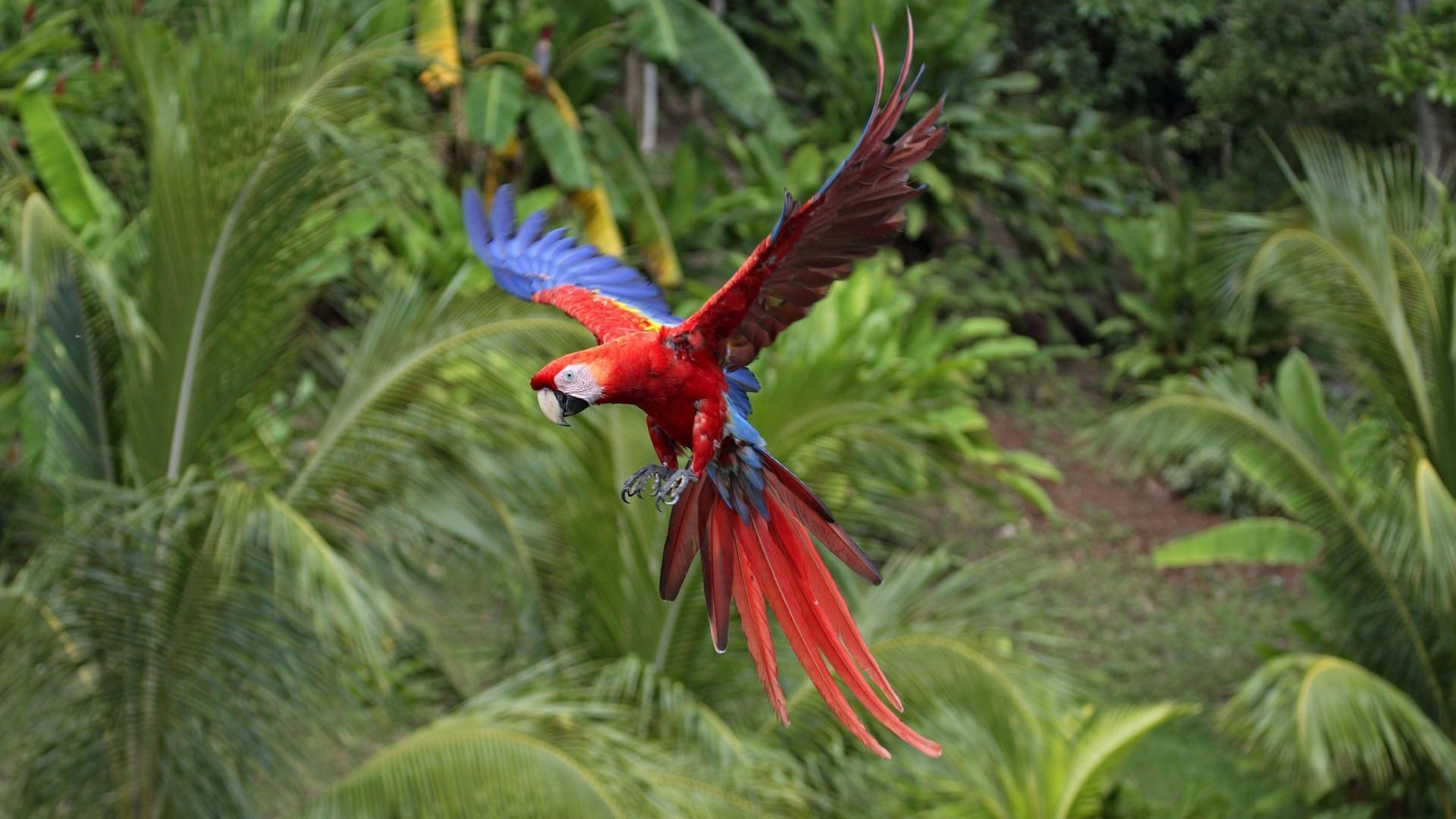 A tropical paradise for a beautiful parrot