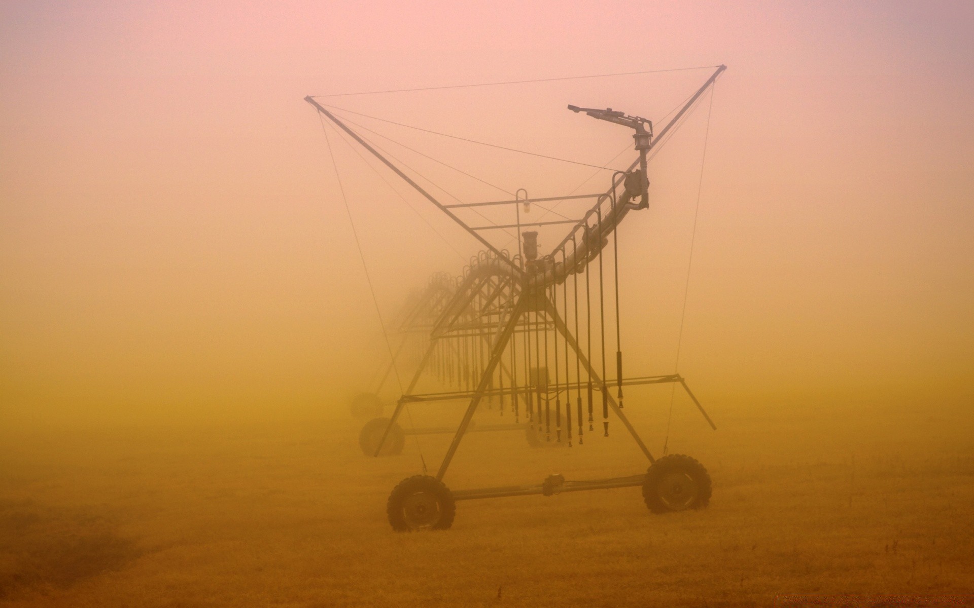 A transport system called a steam locomotive, knocks its wheels outdoors