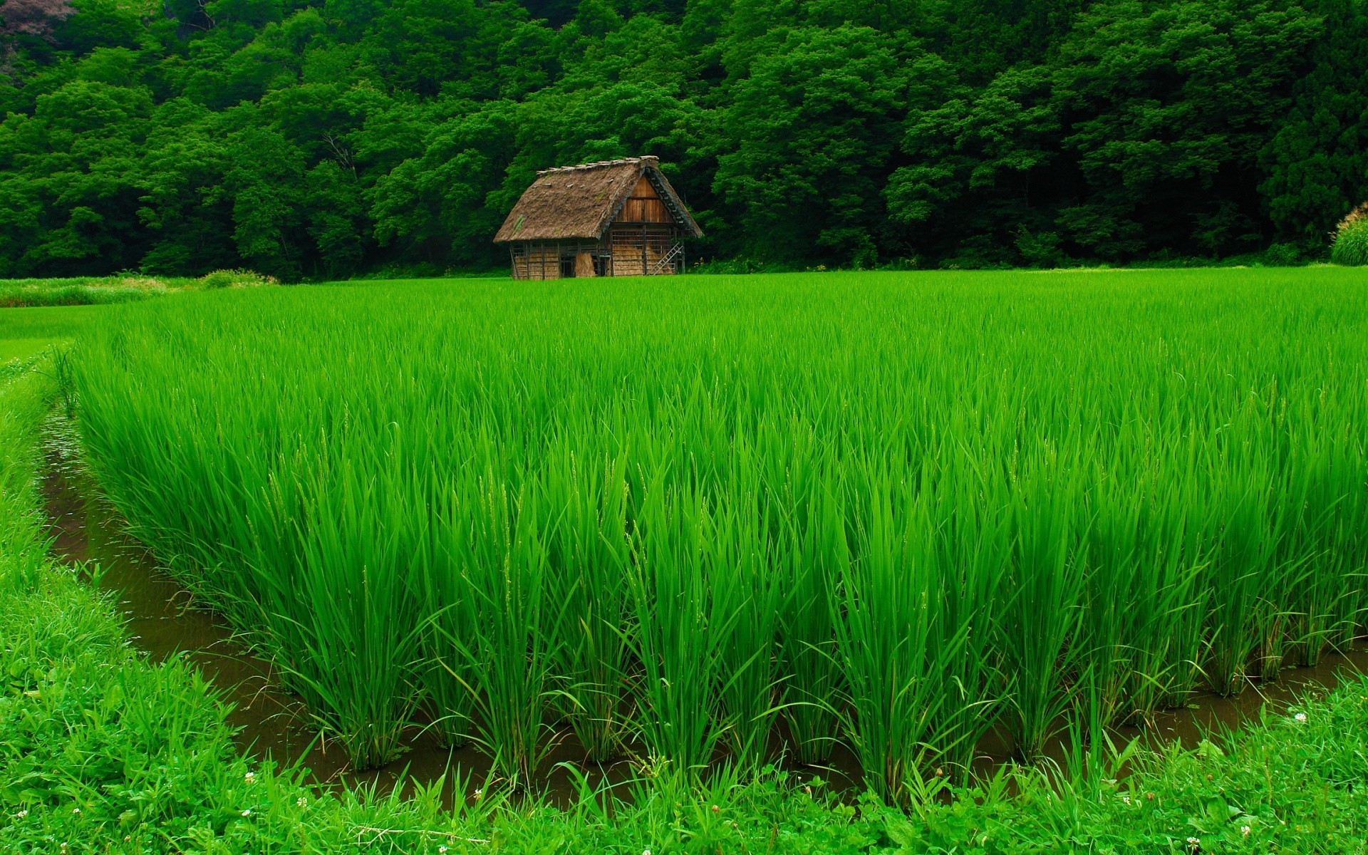 A FARMHOUSE BEHIND A FIELD OF CORN