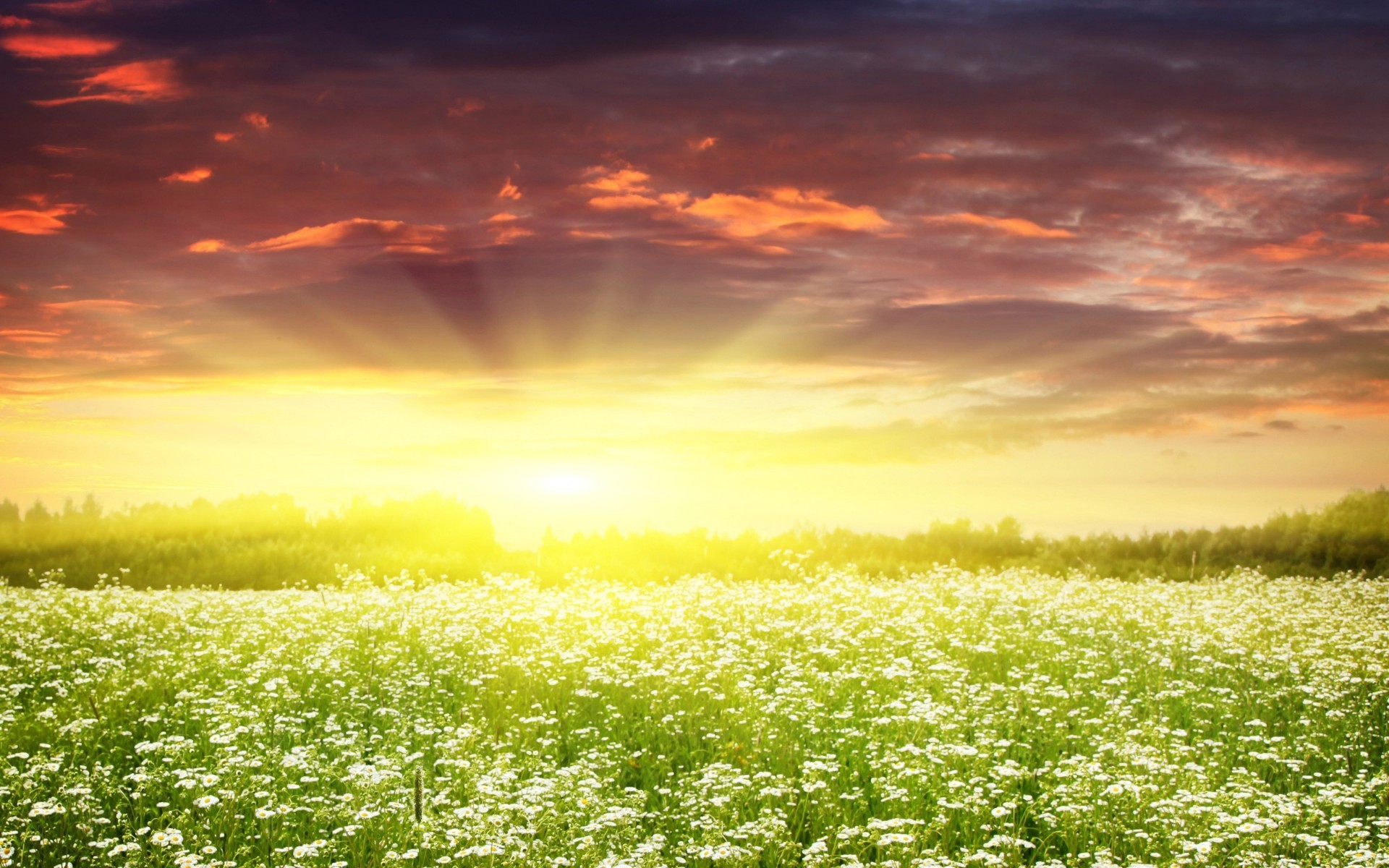 Summer and a whole field of white daisies
