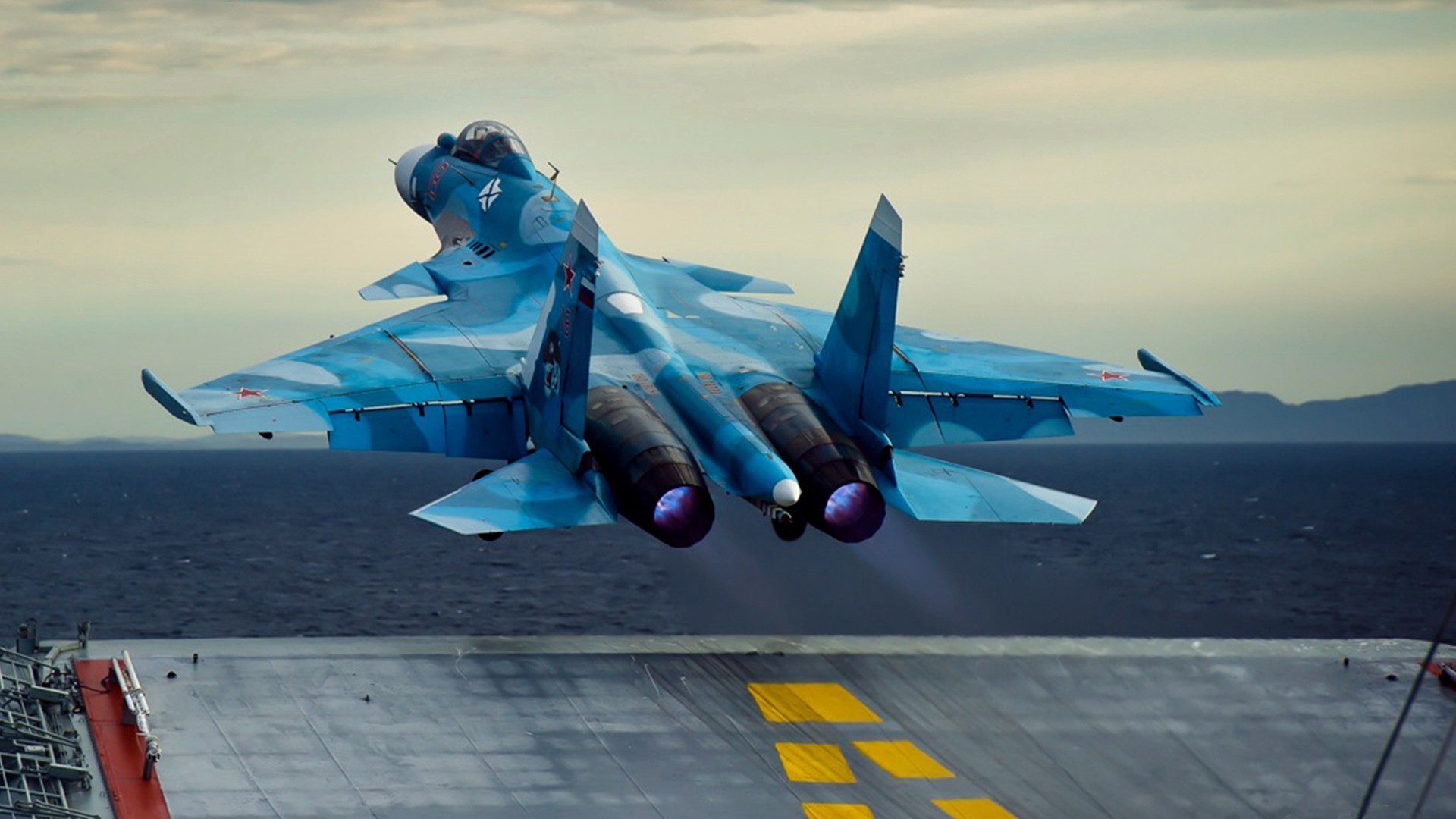Heavy-duty aircraft takes off from the ship