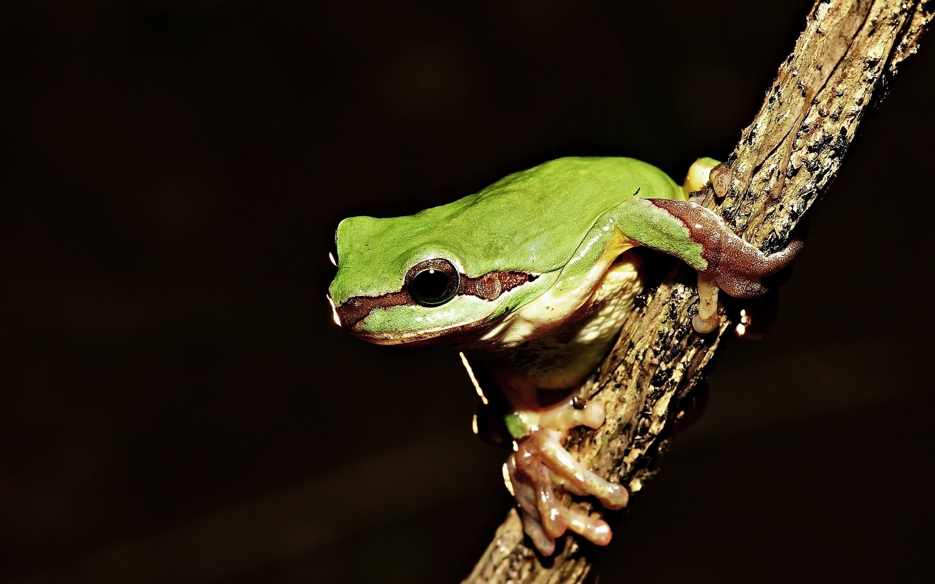 A frog on a branch with an interested look