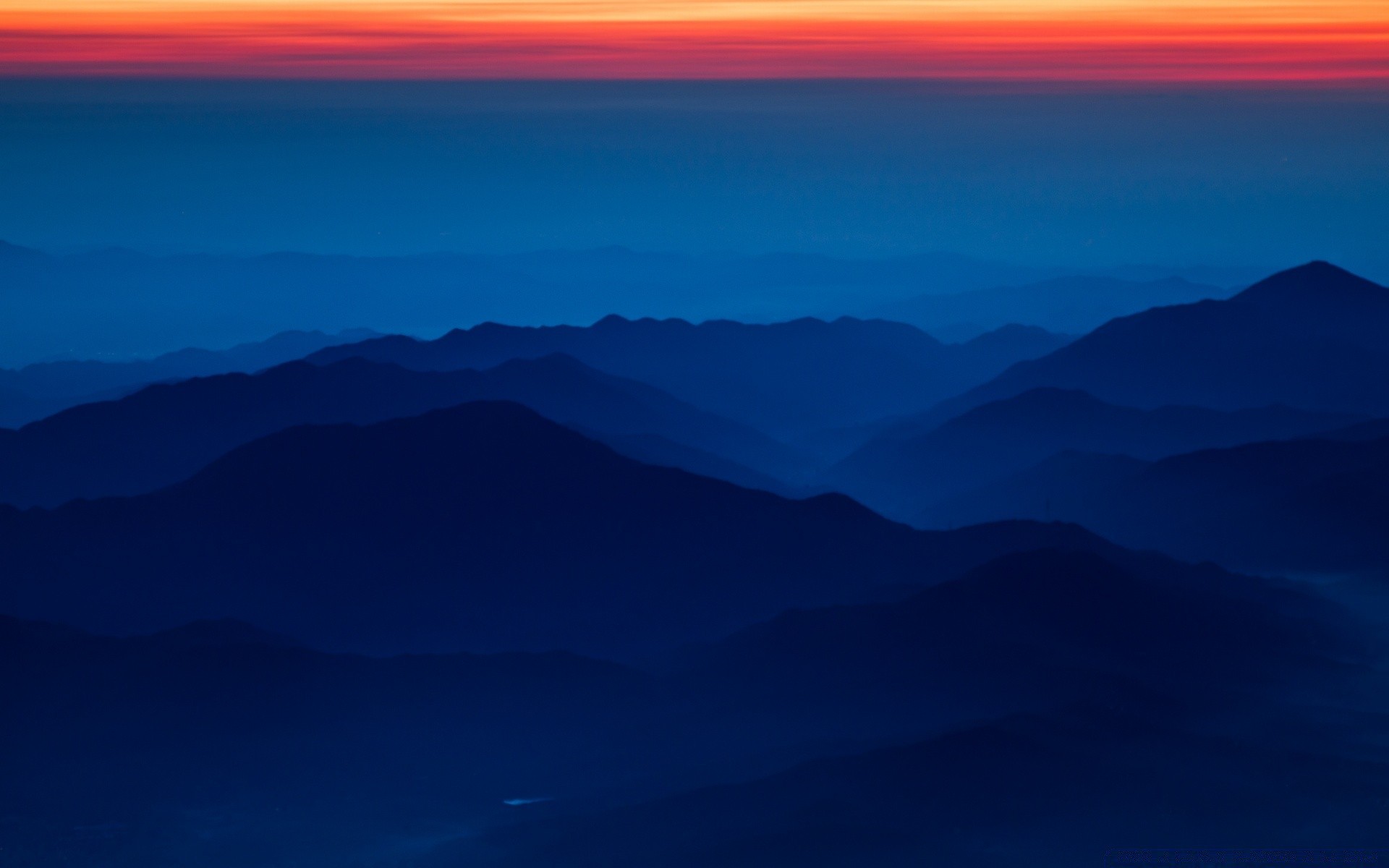 Landscape of dawn. A light silhouette in the sky