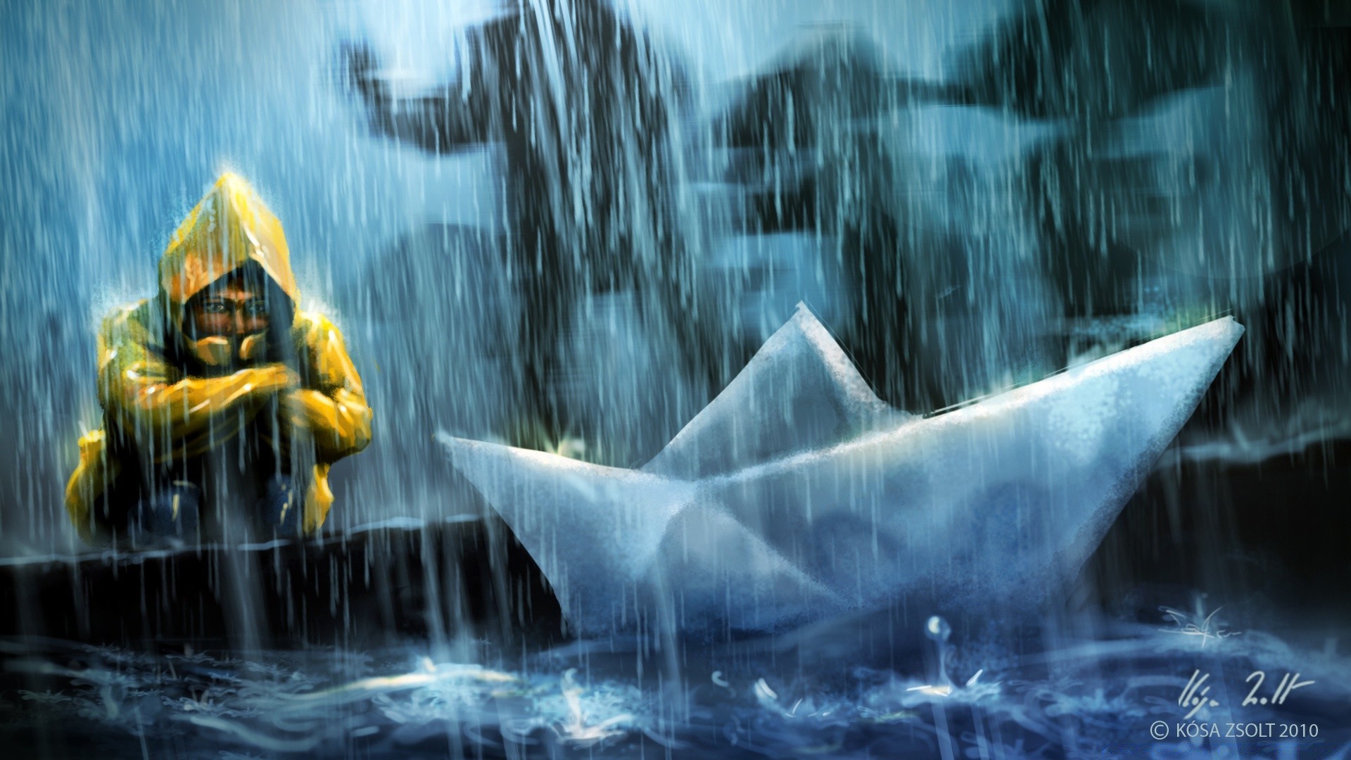 Paper boats in the rain