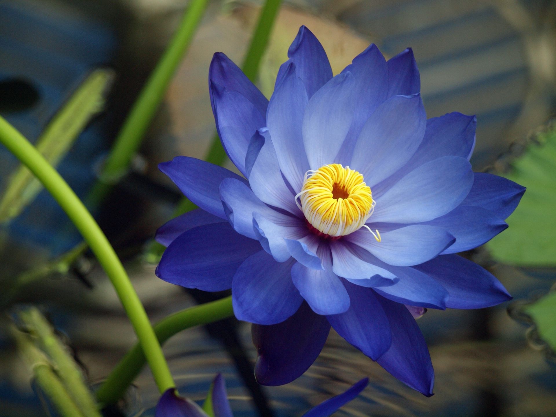 A beautiful blue flower has grown