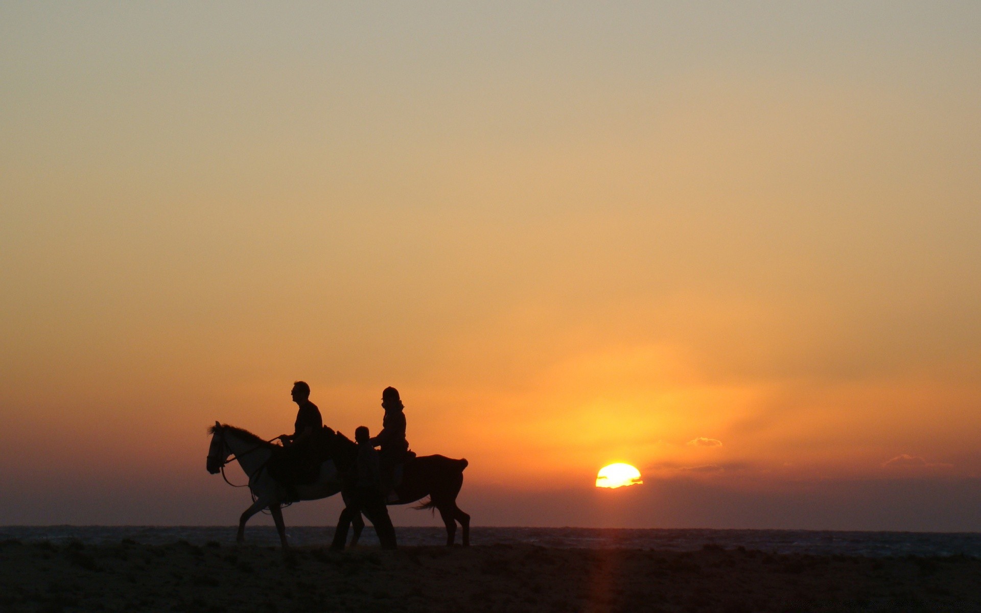 Horse riding at sunset