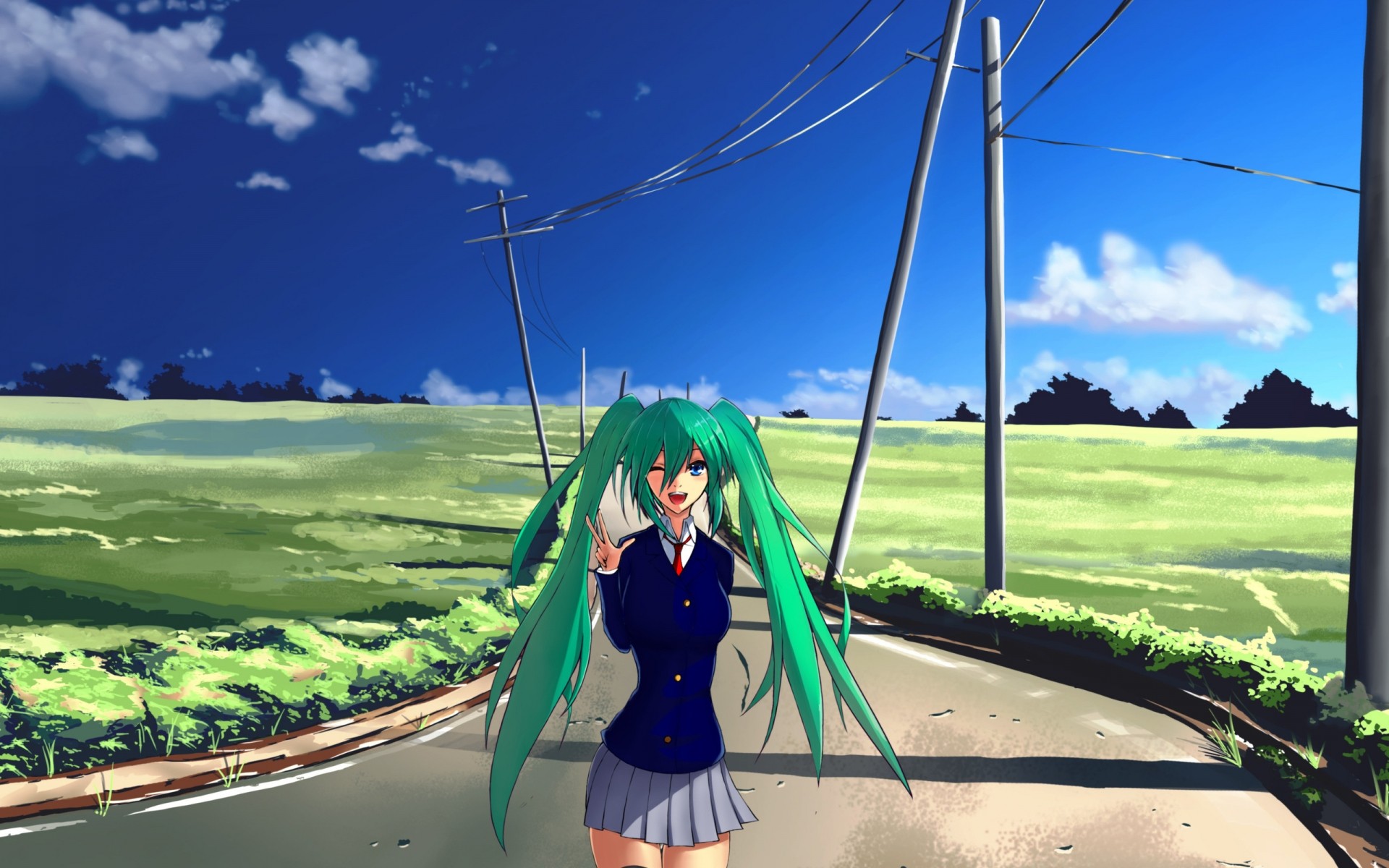 A couple from the anime series in the rays of sunsetA couple from the anime series in the rays of sunset
