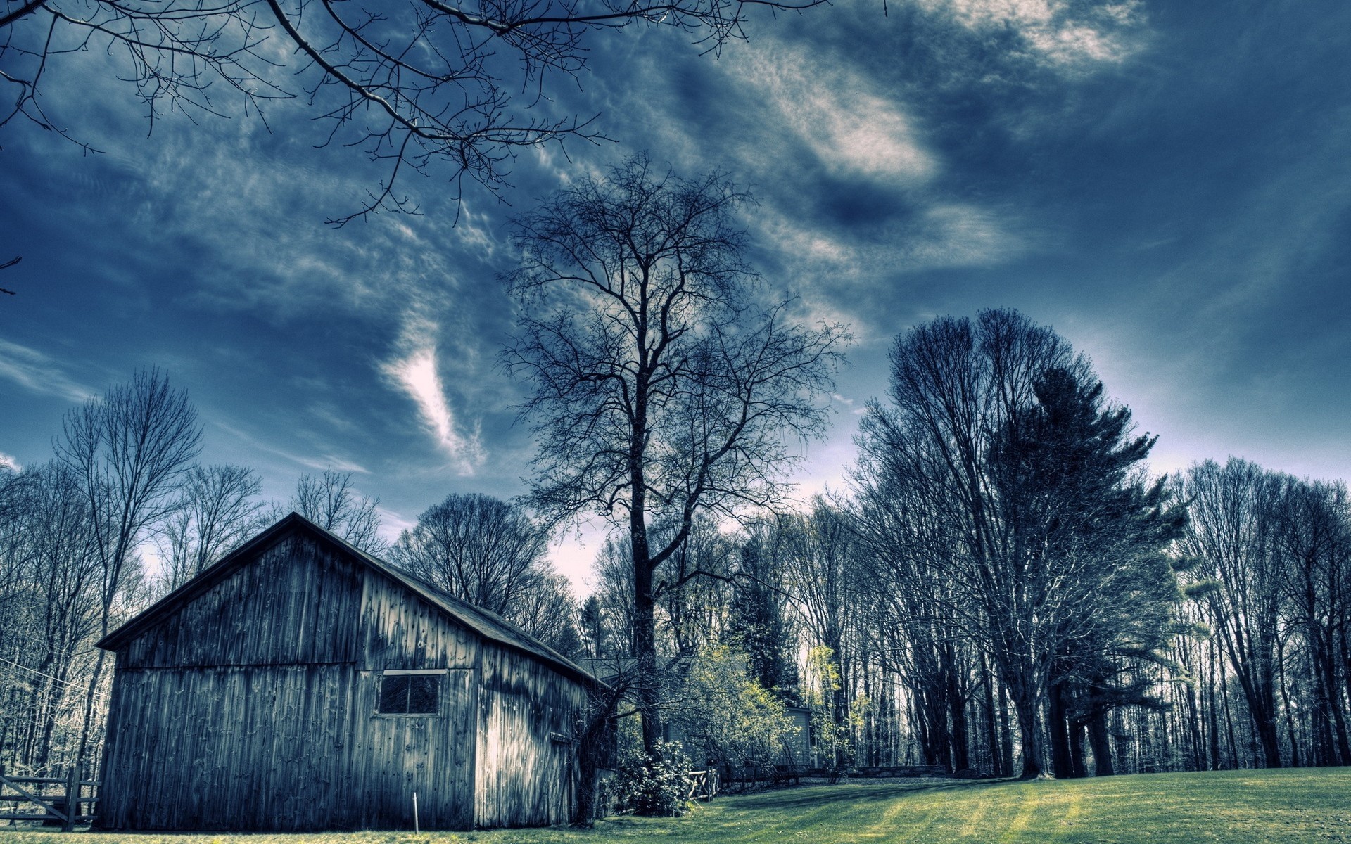Landscape barn in the forest