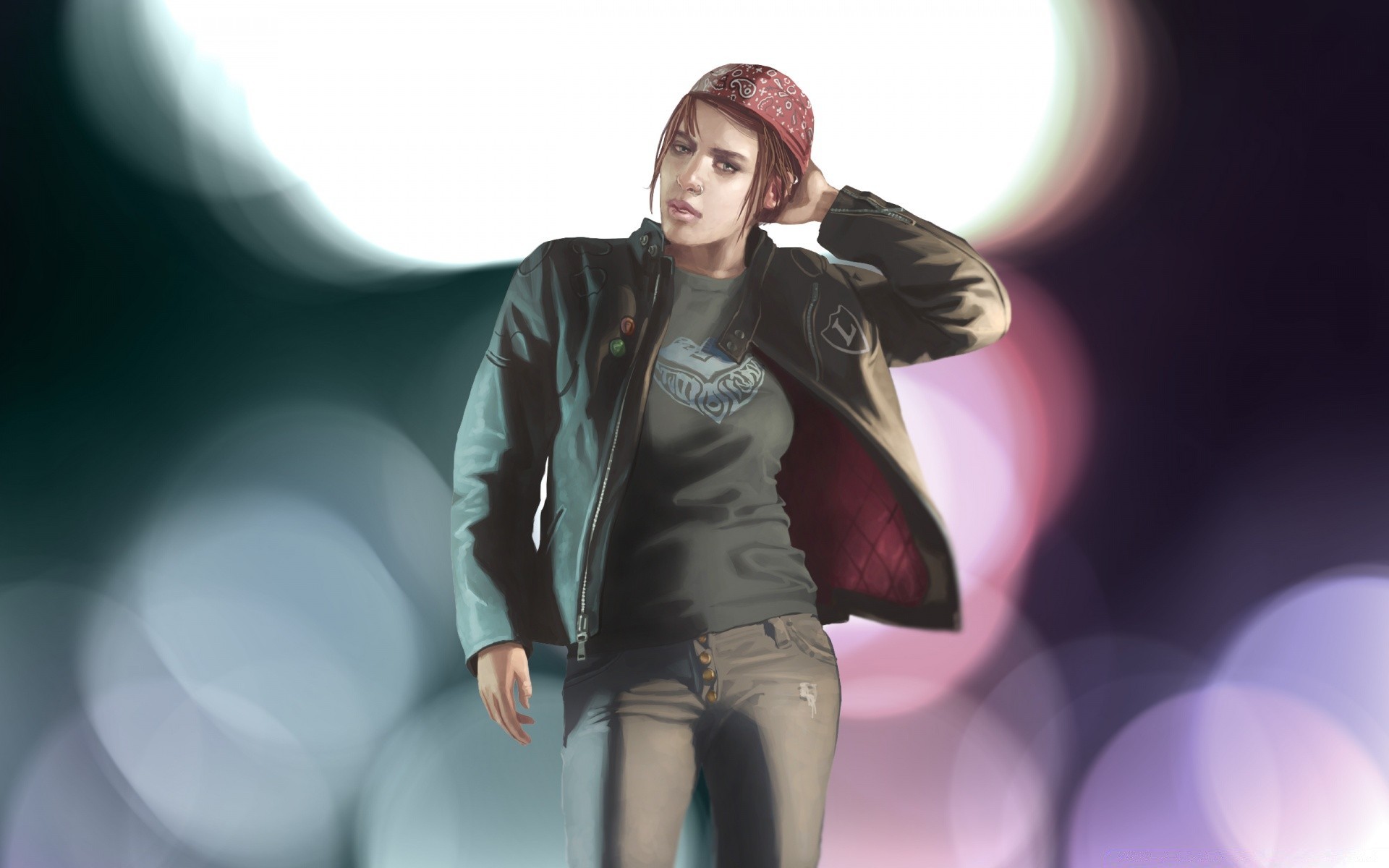 A girl in a cap on the background of lights