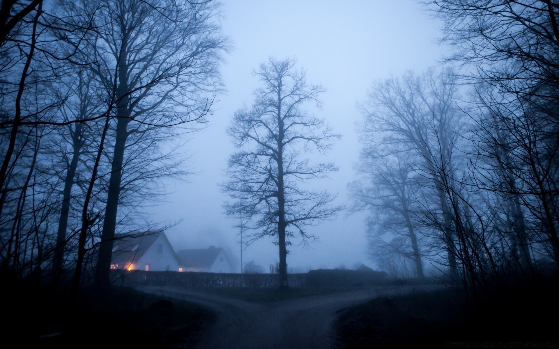 View from the top of the fir trees in the snow and fog under themView from the top of the fir trees in the snow and fog under them