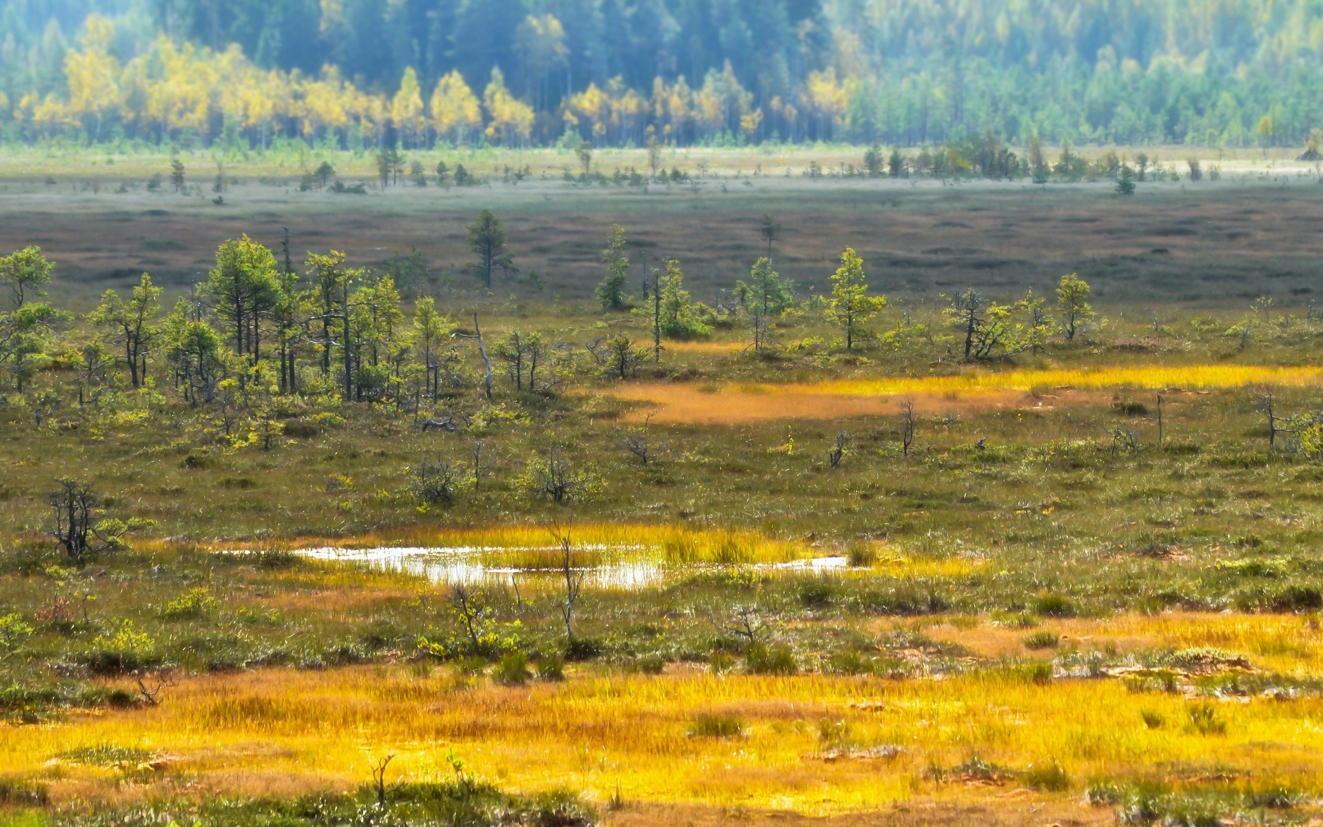 A lowland with a swamp and small trees