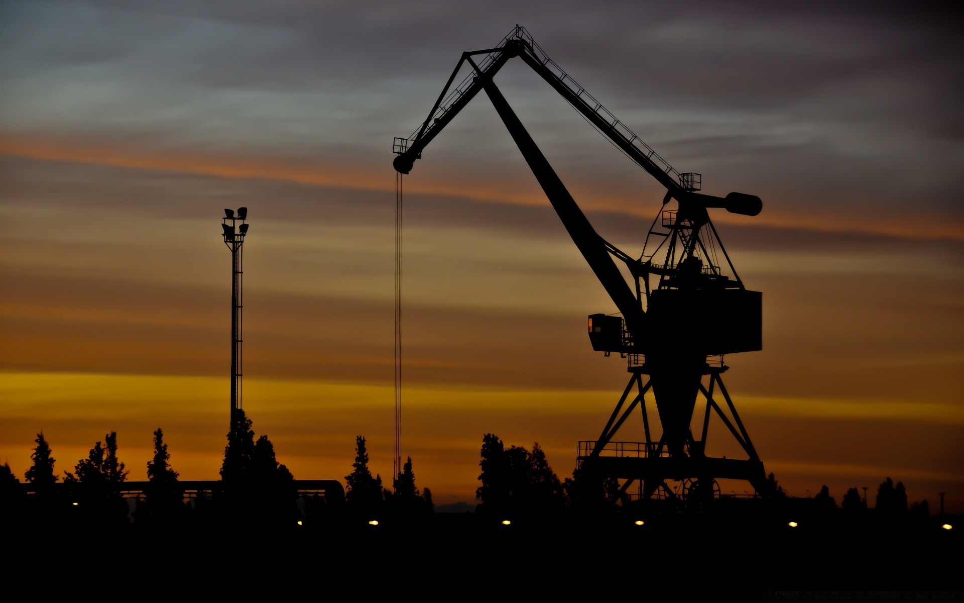 The crane forces on a summer sunset