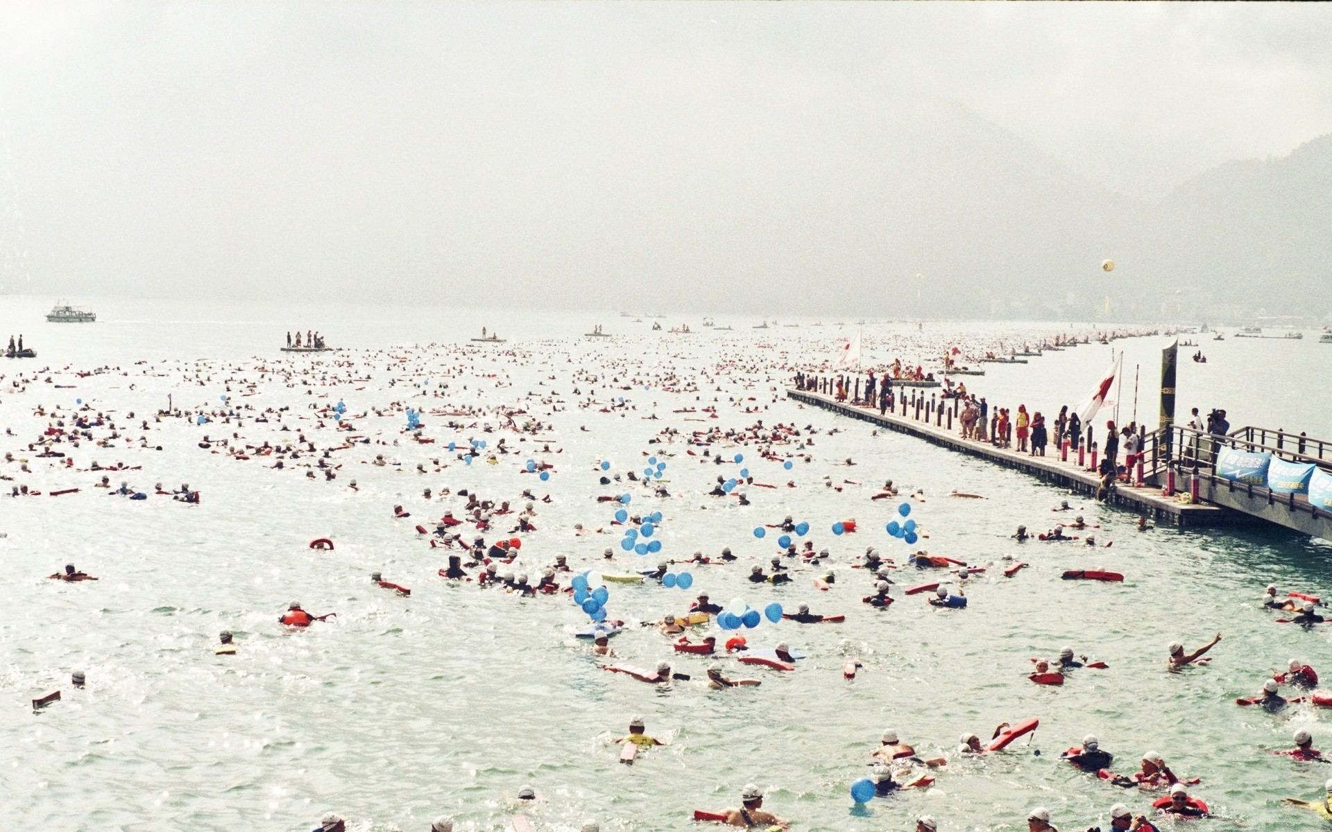 A white kitten sits in the grass and looks at you with a look full of disappointment