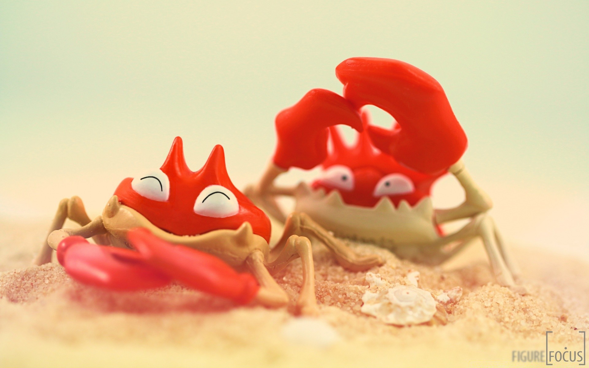 Funny crabs on a sandy beach