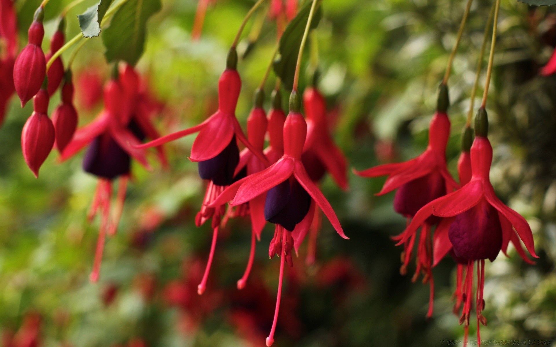 Red flowers hanging in the air in the garden nature