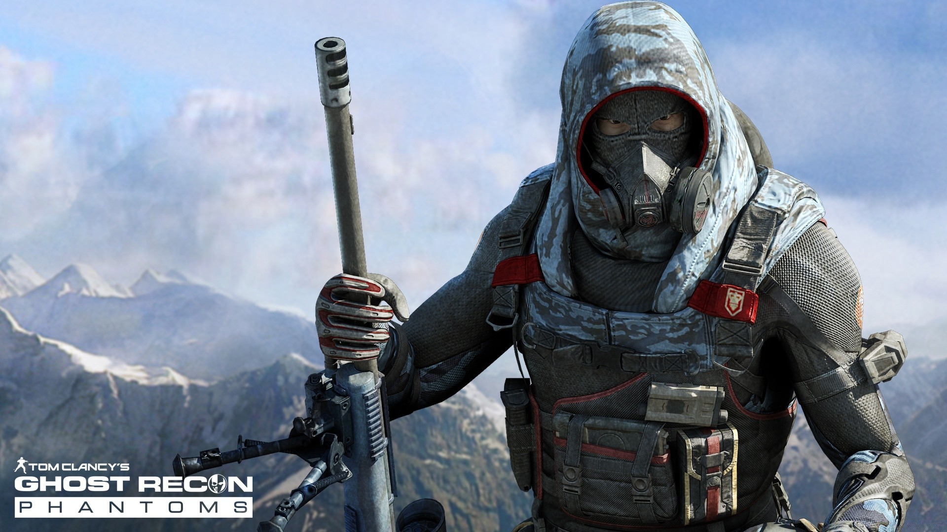 Special Forces squad Ghosts on the background of a cold mountain landscape