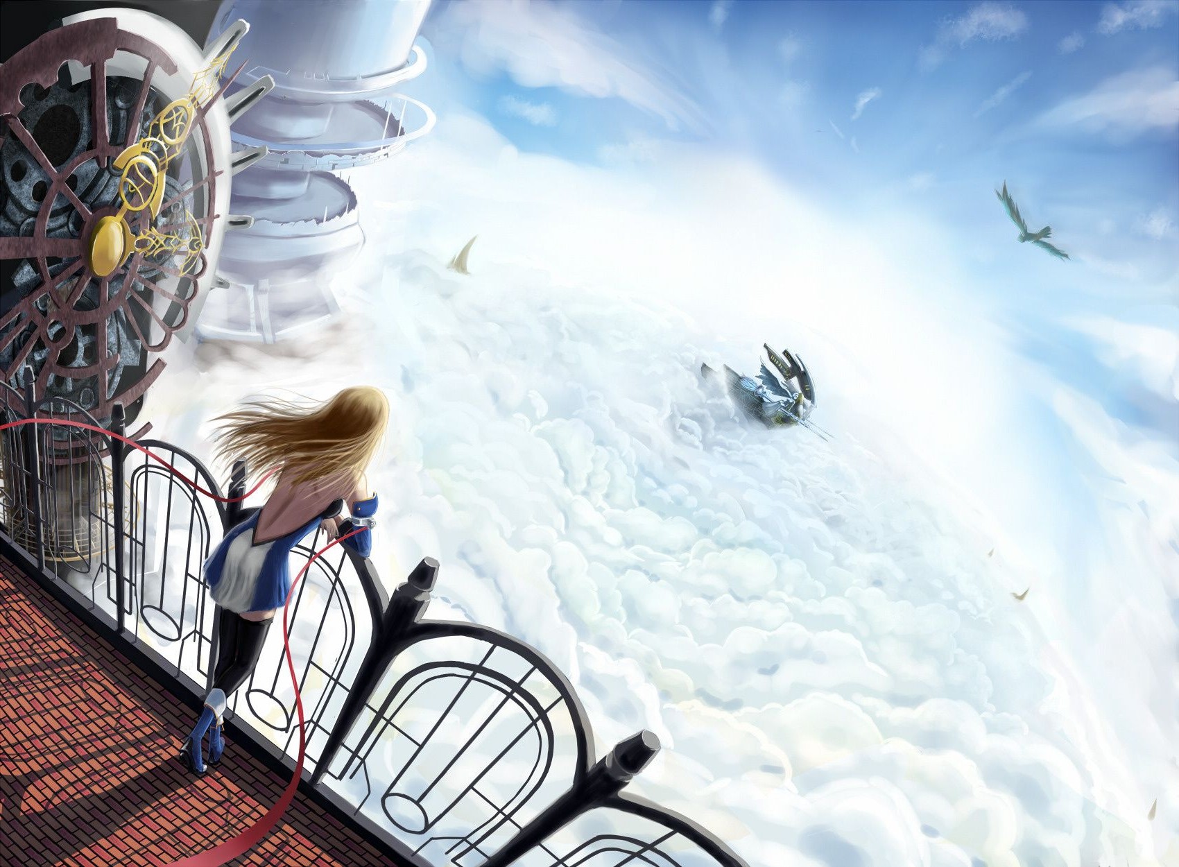 The girl stands on the balcony and looks into the distance