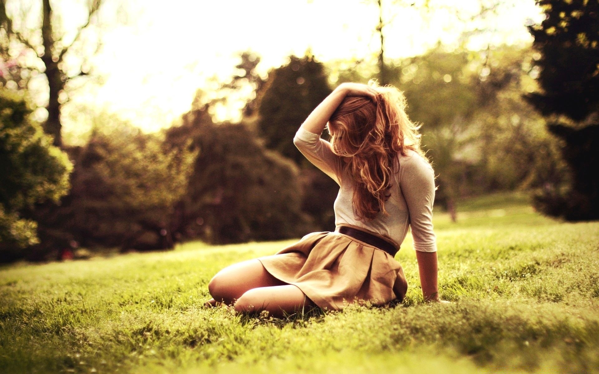 Mysterious girl in a skirt on the grass