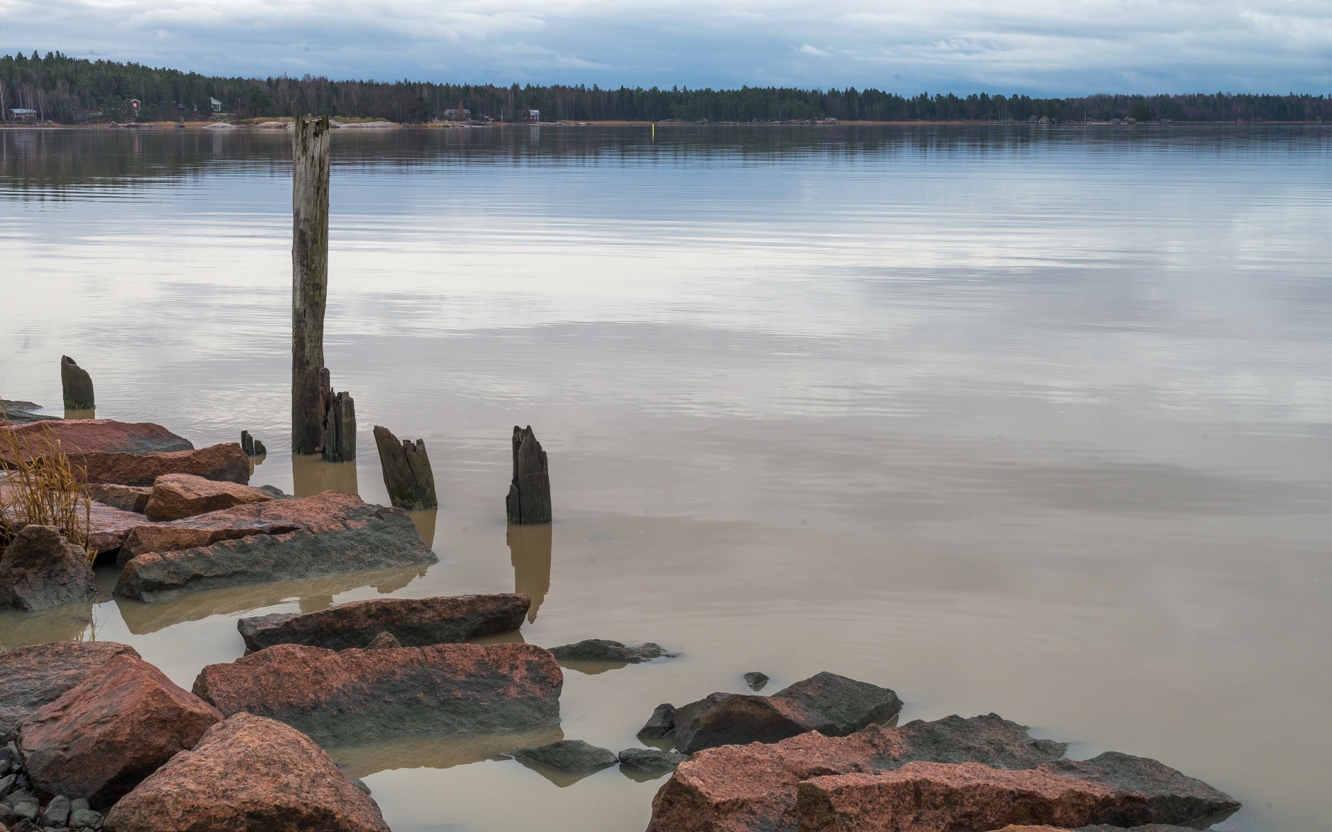 Granite stones on the lake shore