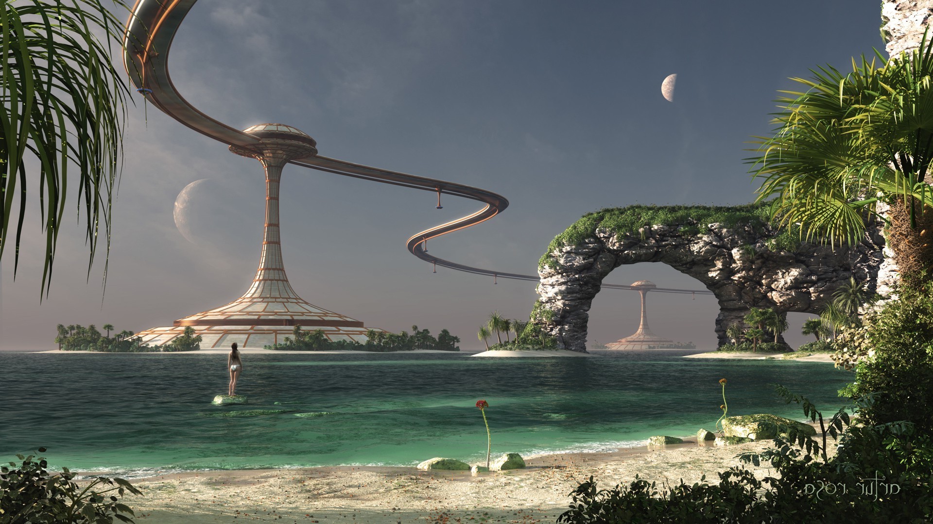 The shore near the fantasy city