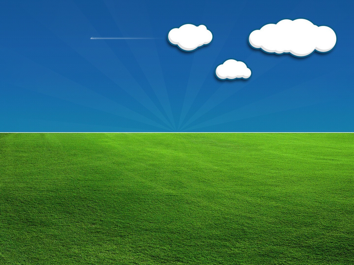Horizon, green grass, blue sky