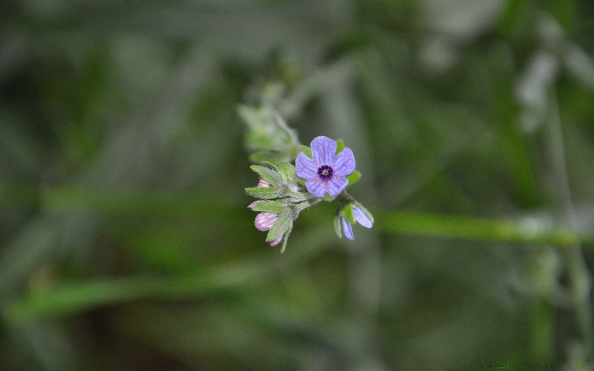 Green grass and small yellow flowers in the field under the rays of the sunGreen grass and small yellow flowers in the field under the rays of the sun