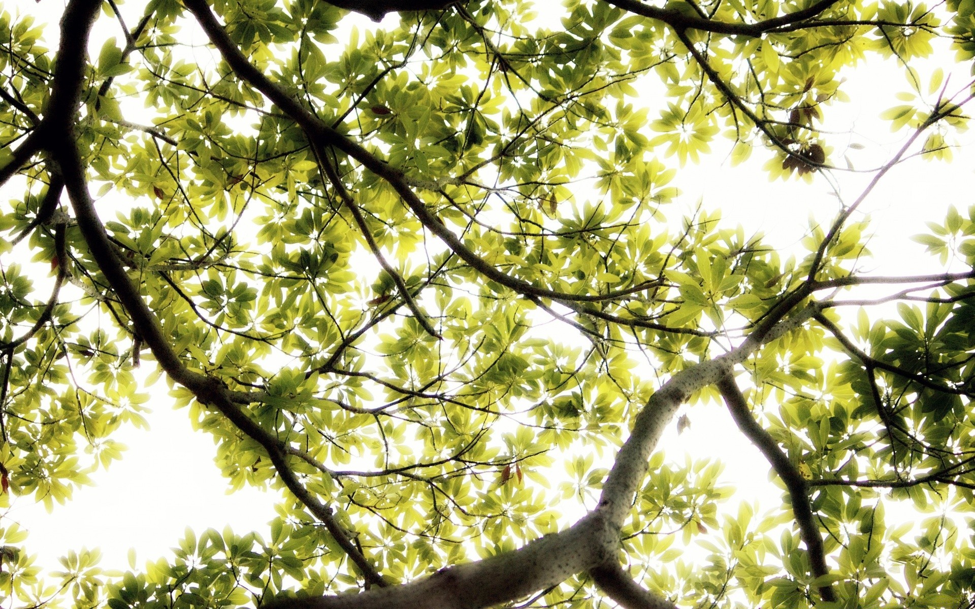 The sky through a lot of green leaves