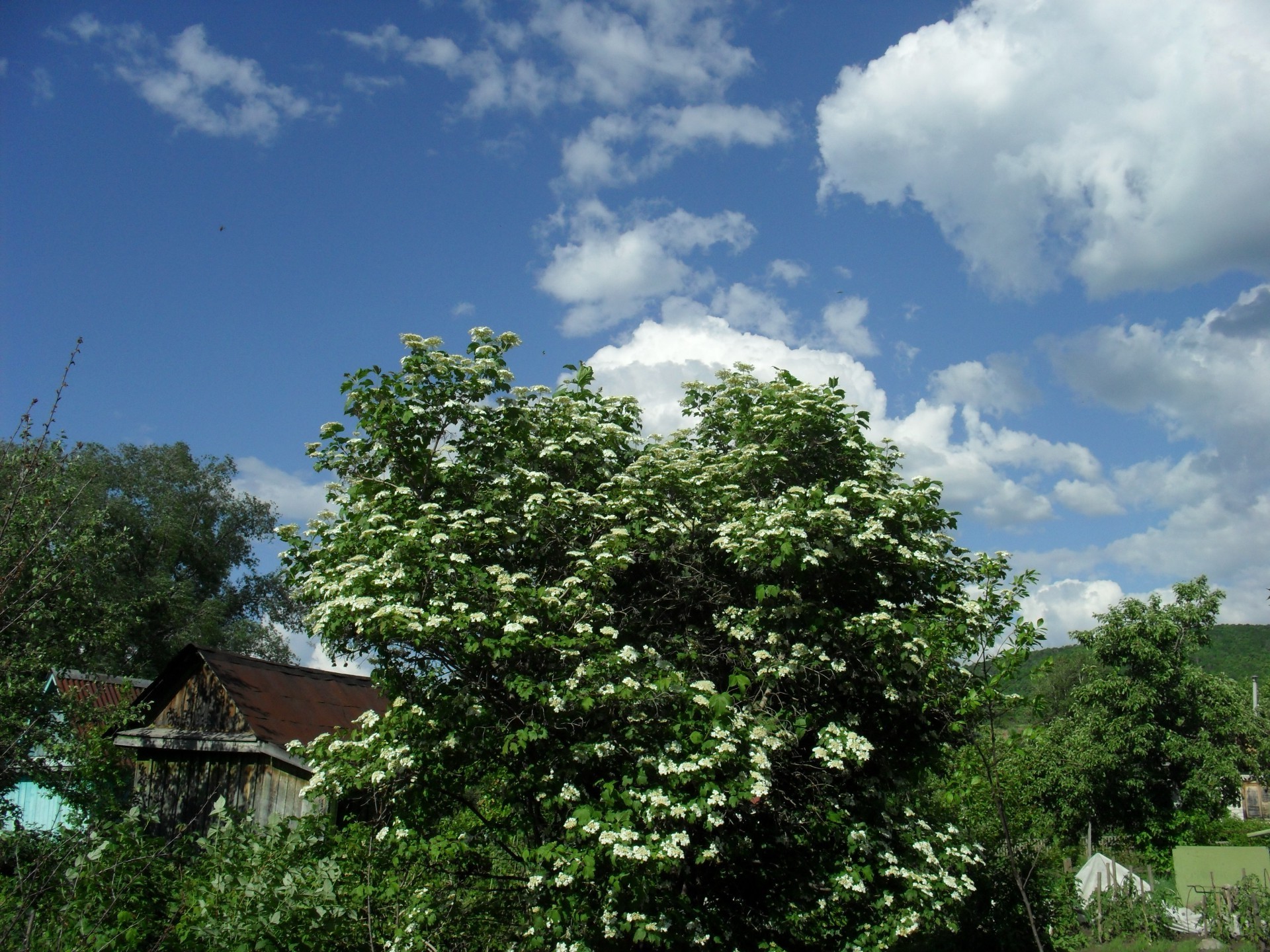 A green tree in bloom on a summer day the rays of the sun through the green branches of the tree