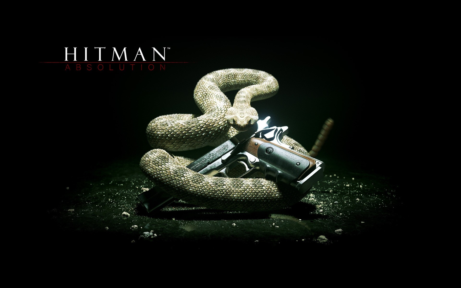 Hitman. A gun and a snake on a black background