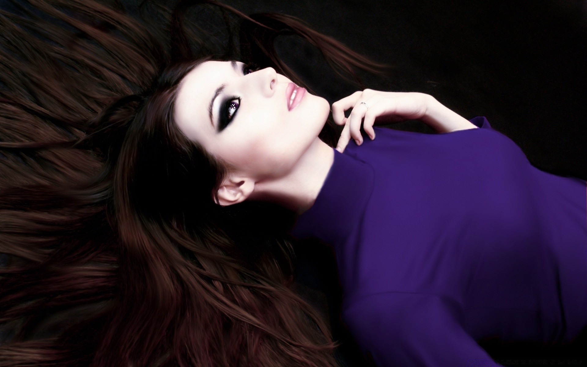 A red-haired woman in a Soviet kitchen with a cleavage sings