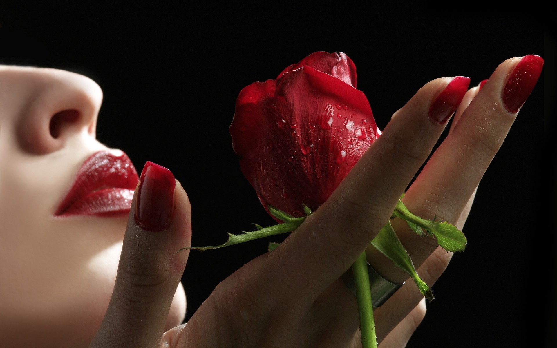 An elf holds a rose in his hands, sitting on the grass in the autumn forest
