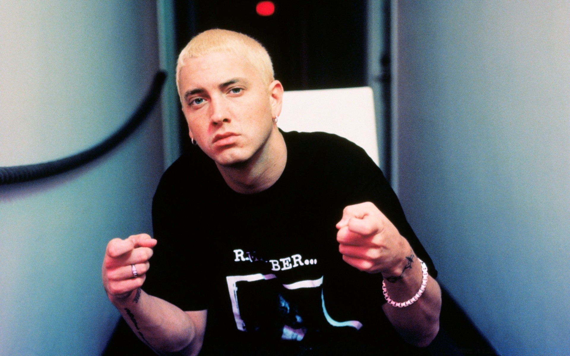 Bald handsome man shows something