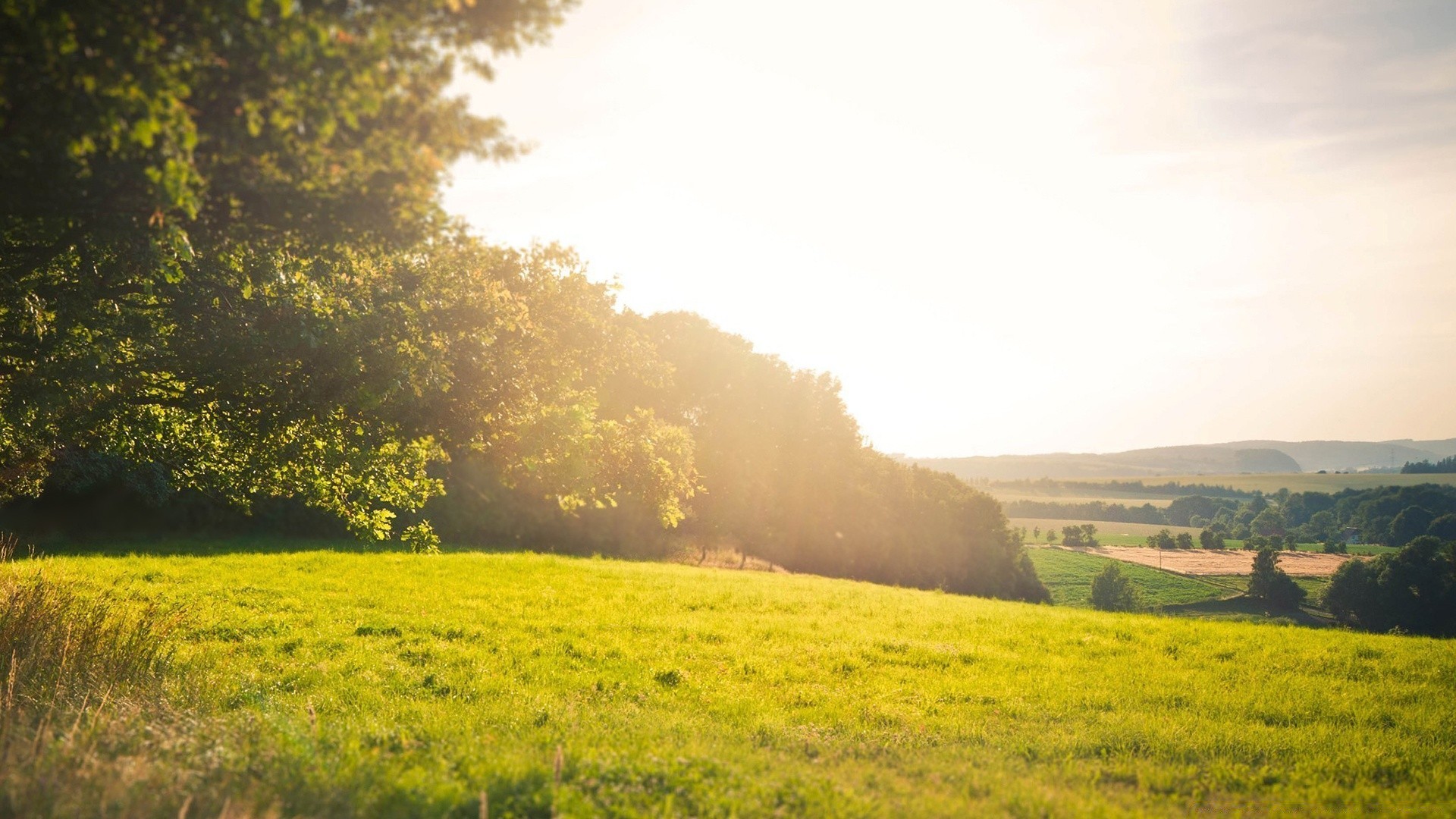 Bright sun in the sky above the clearing