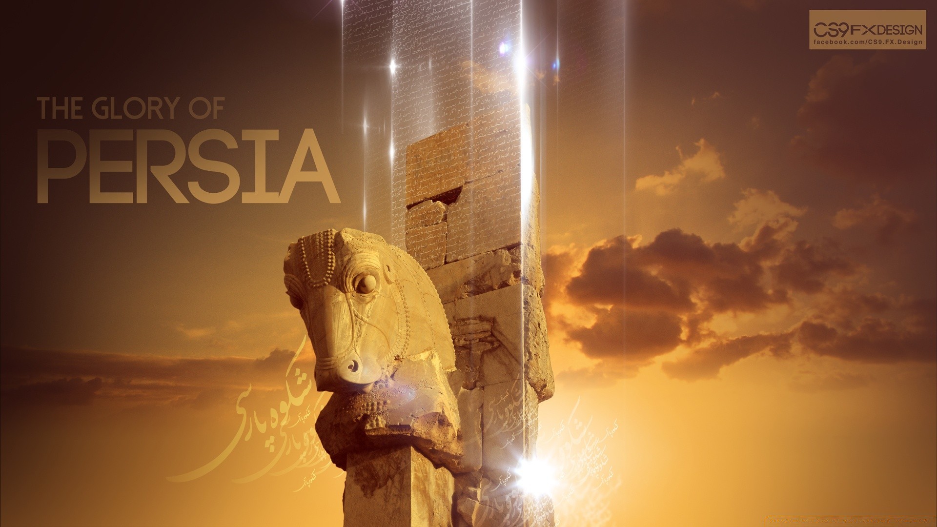 Sculpture of a horse's head in the ancient persian style against the background of the sunset skySculpture of a horse's head in the ancient Persian style against the background of the sunset sky