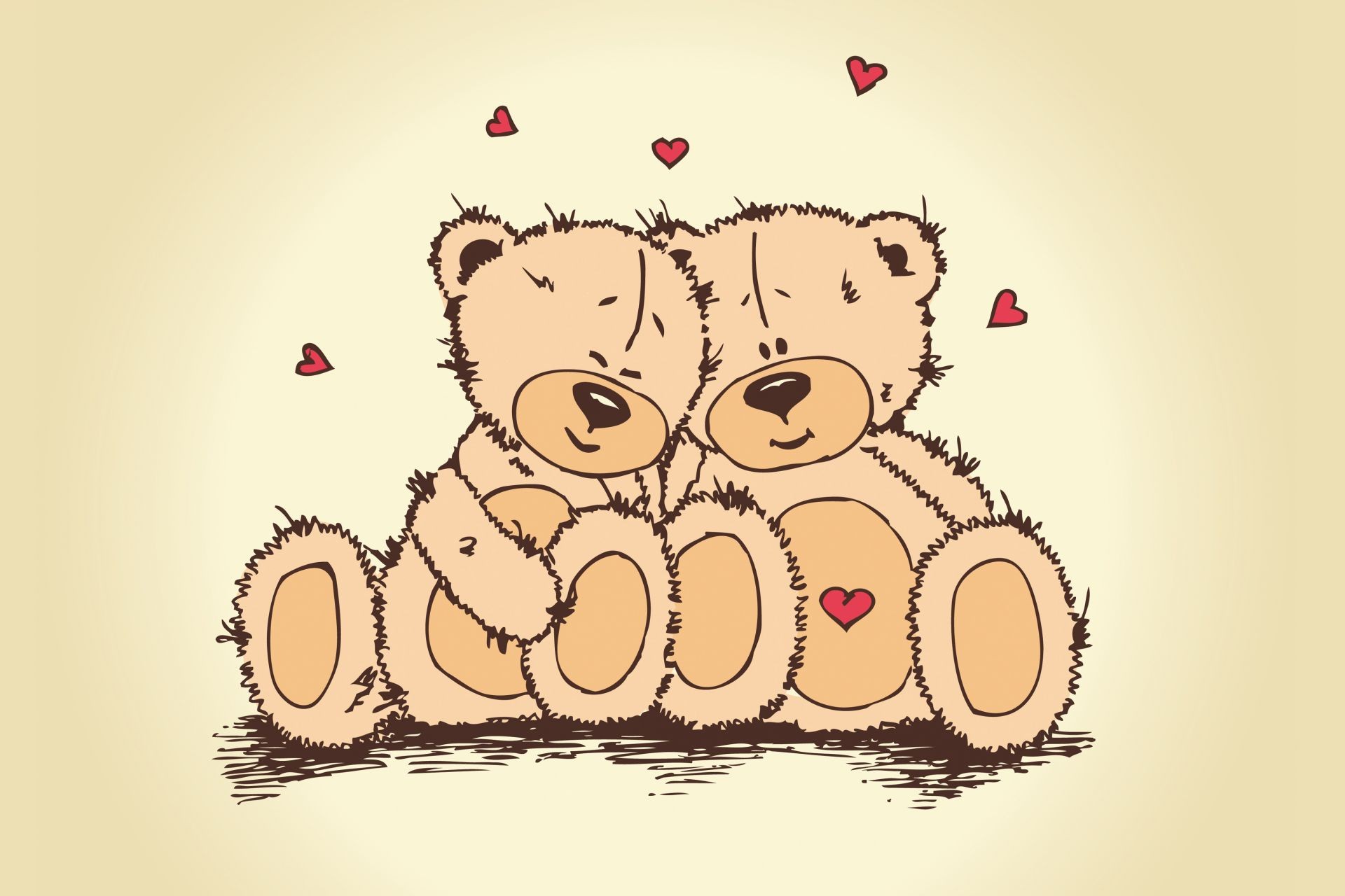 A couple of bears are surrounded by hearts