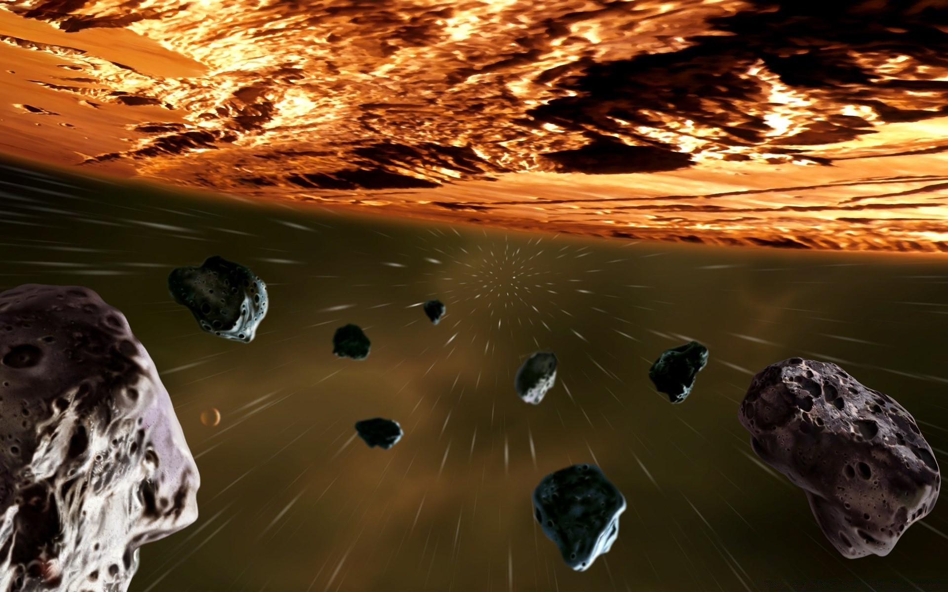The hero of the game Farcry 4 in full combat gear stands on the high bank of the river knee-deep in the grass against the background of the sunset sky
