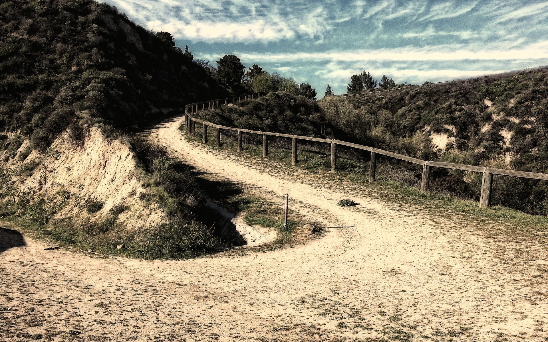 Photo of a mountain hiking trail with a fence